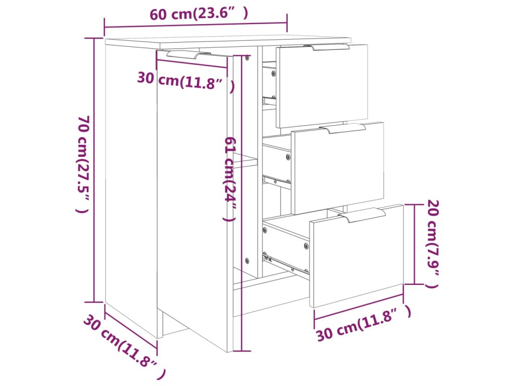 - Rozměry: 60 x 30 x 70 cm (Š x H x V)