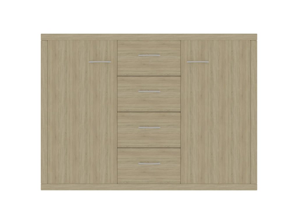 Příborník má 4 zásuvky a 2 dvířka a poskytne vám spoustu úložného prostoru pro vaše knihy, multimediální zařízení a další předměty. Robustní deska je ideálním místem pro vystavení dekorativních předmětů, zarámovaných fotografií nebo pokojových rostlin. Příborník lze také využít jako odkládací skříňku, komodu apod. Je zhotovený z kompozitního dřeva prémiové kvality a vydrží vám sloužit dlouhé roky.