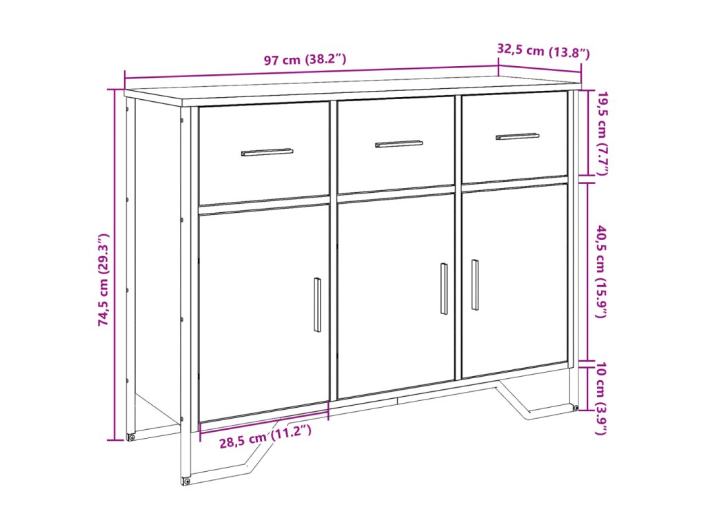 - Stabilní a robustní horní část: Horní část příborníku se skvěle hodí k vystavení dekorativních předmětů, fotorámečků a pokojových rostlin.