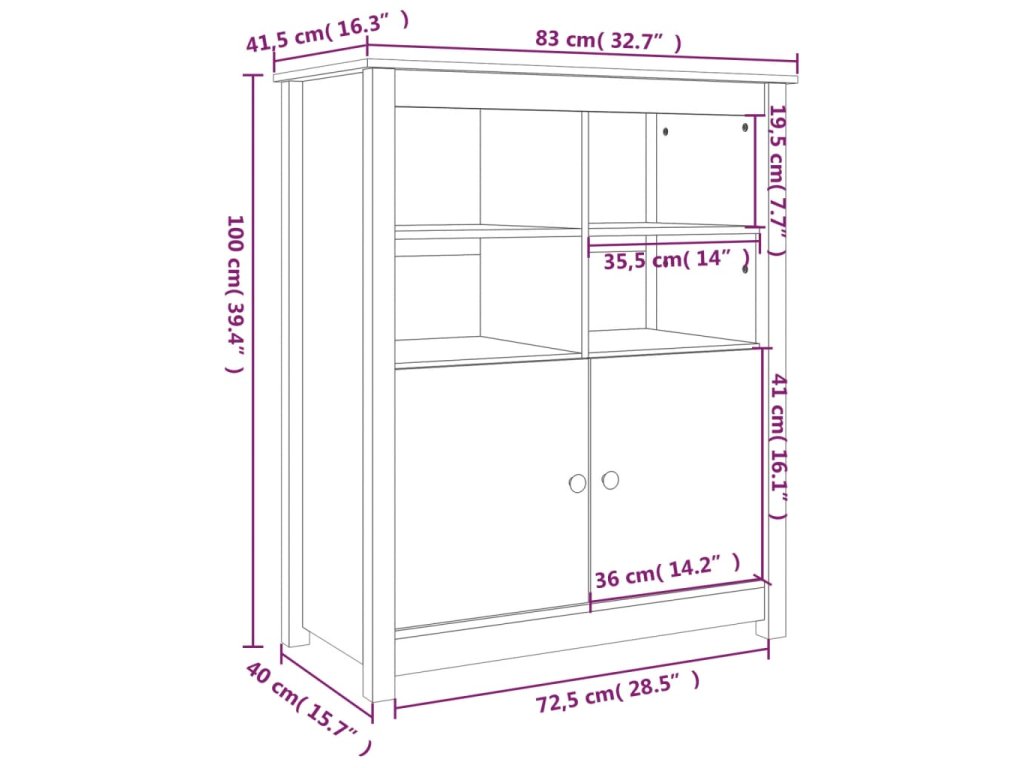 Příborník medově hnědý 83 x 41,5 x 100 cm masivní borové dřevo 821515