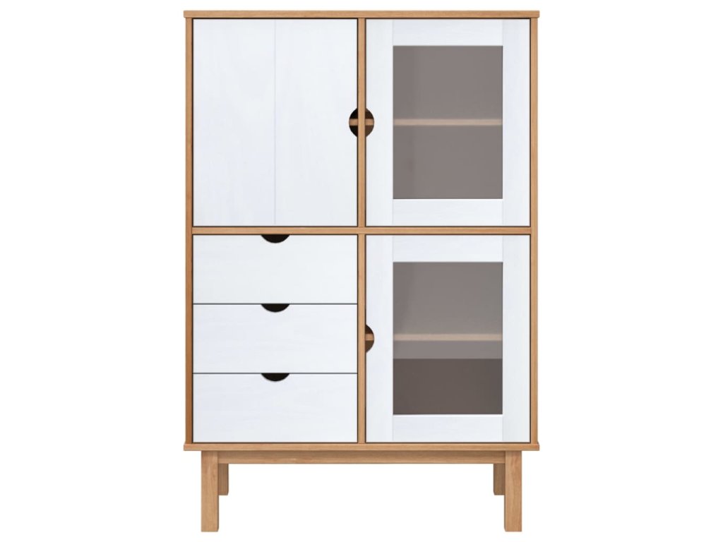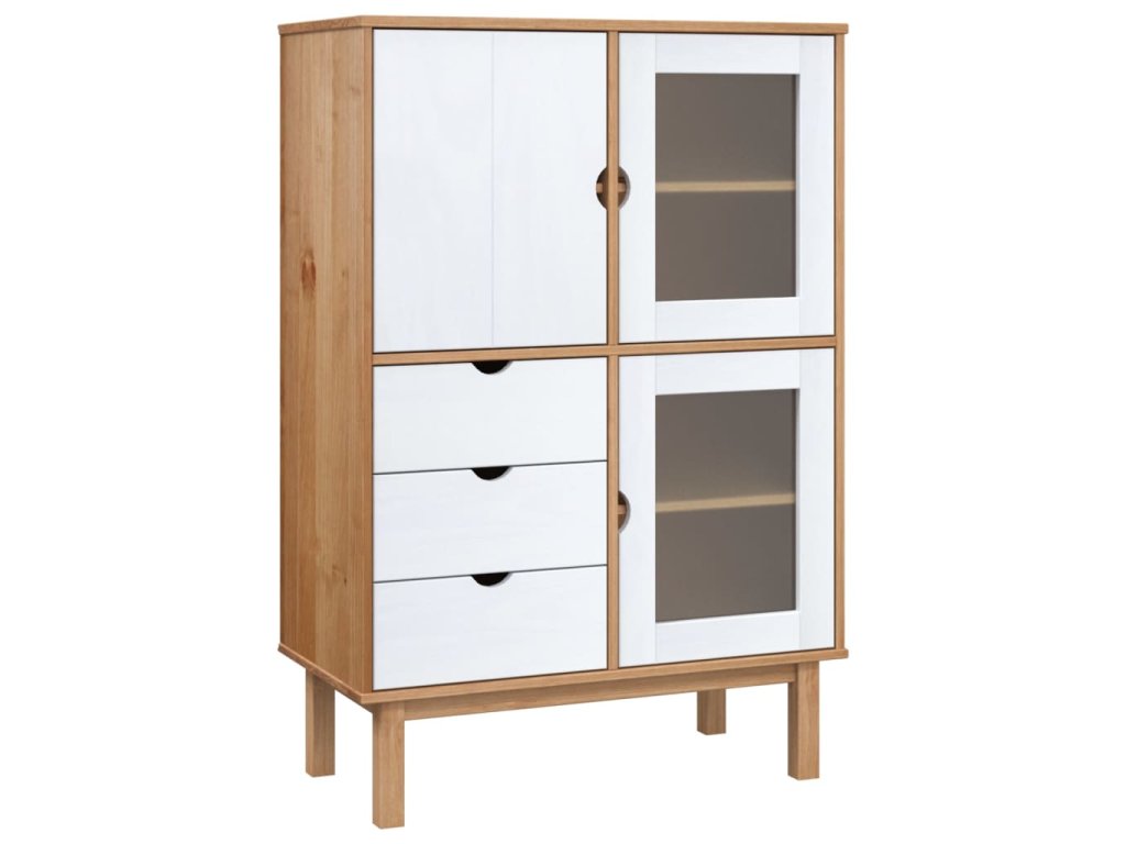 Příborník OTTA hnědý a bílý 85x43x125 cm masivní borové dřevo 351308