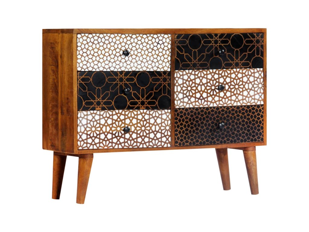 Příborník s potiskem 90 x 30 x 70 cm masivní mangovníkové dřevo 247916