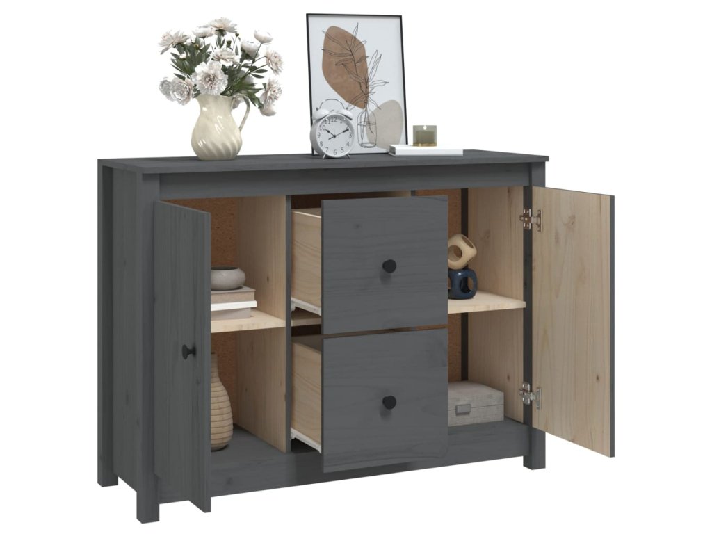 Příborník šedý 100 x 35 x 74 cm masivní borové dřevo 814566