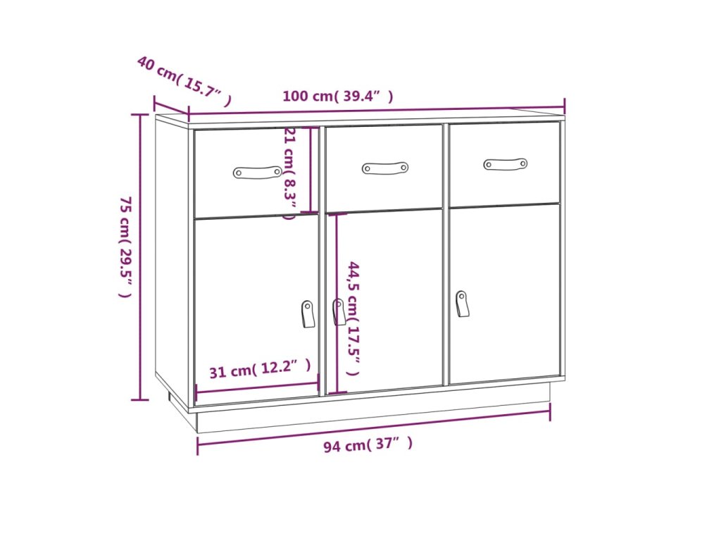 Příborník šedý 100 x 40 x 75 cm masivní borové dřevo 820149