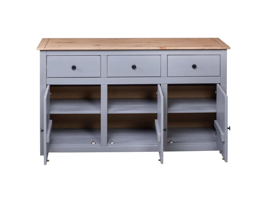 Příborník šedý 135 x 40 x 80 cm masivní borovice řada Panama 282704