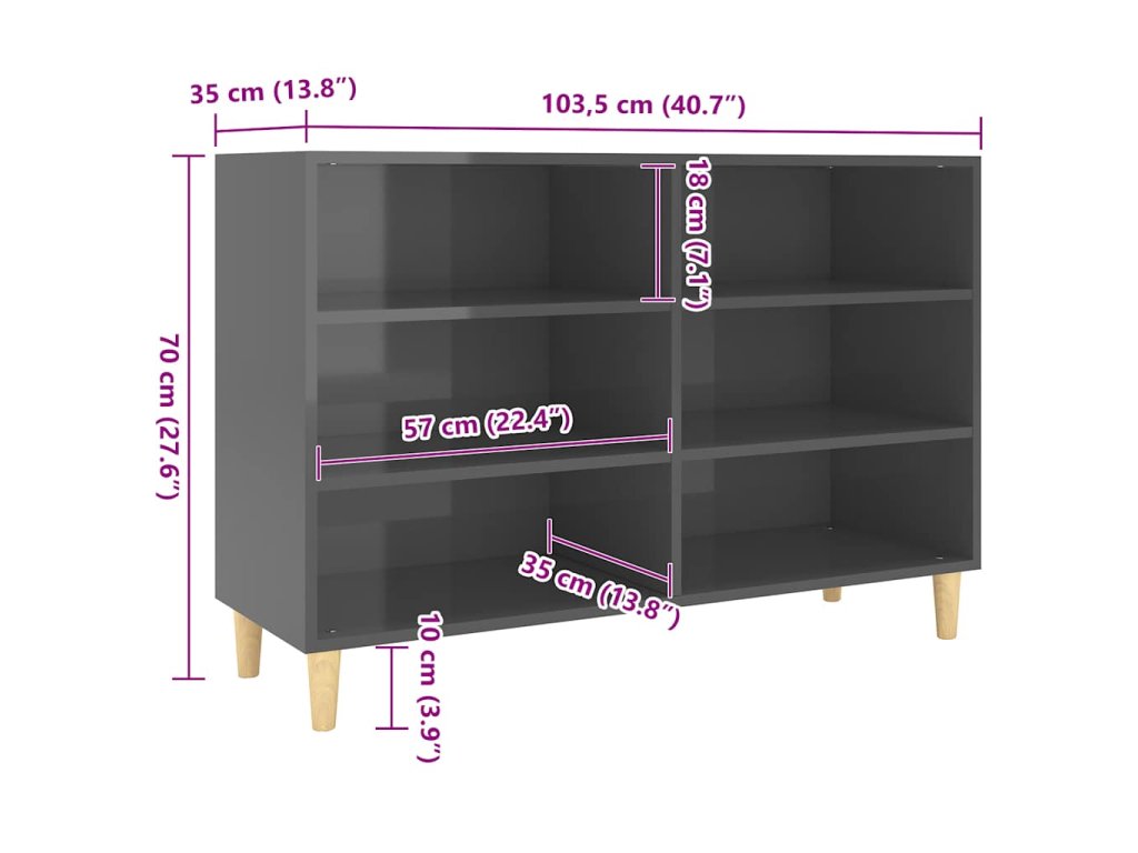 Příborník šedý s vysokým leskem 103,5 x 35 x 70 cm dřevotříska 806039