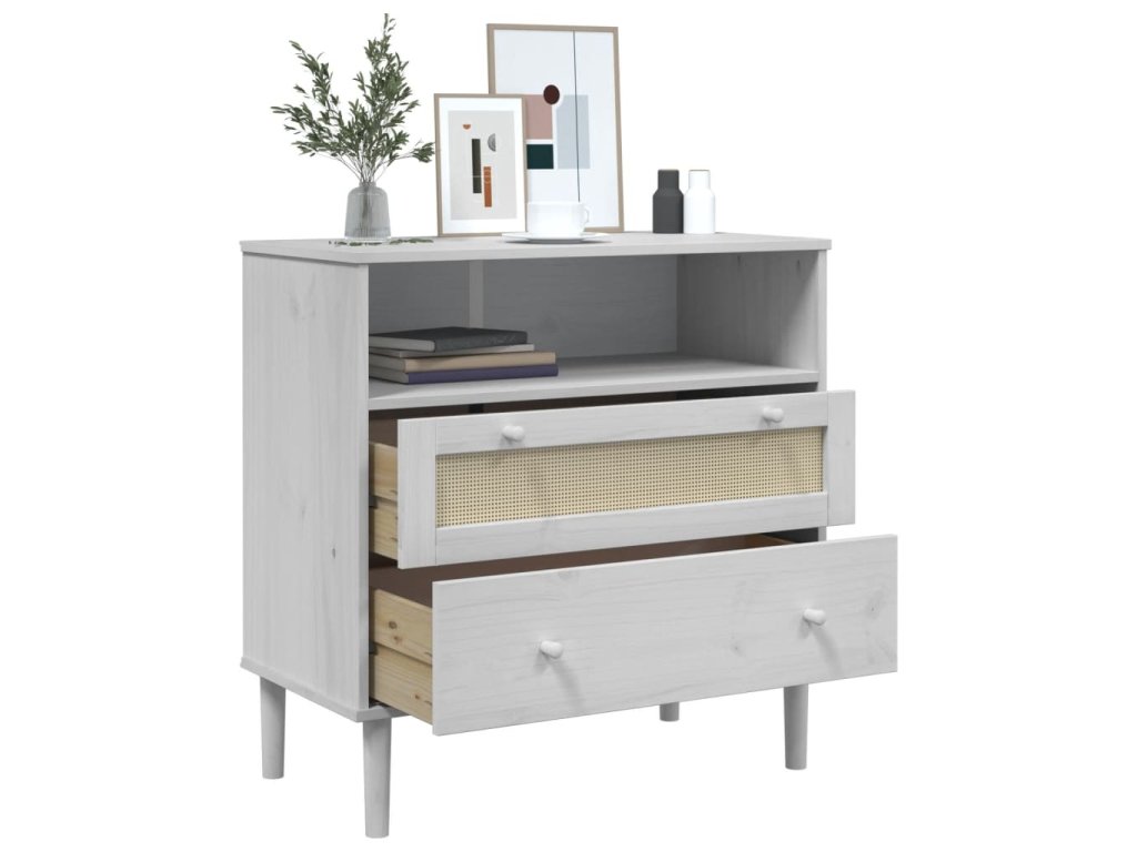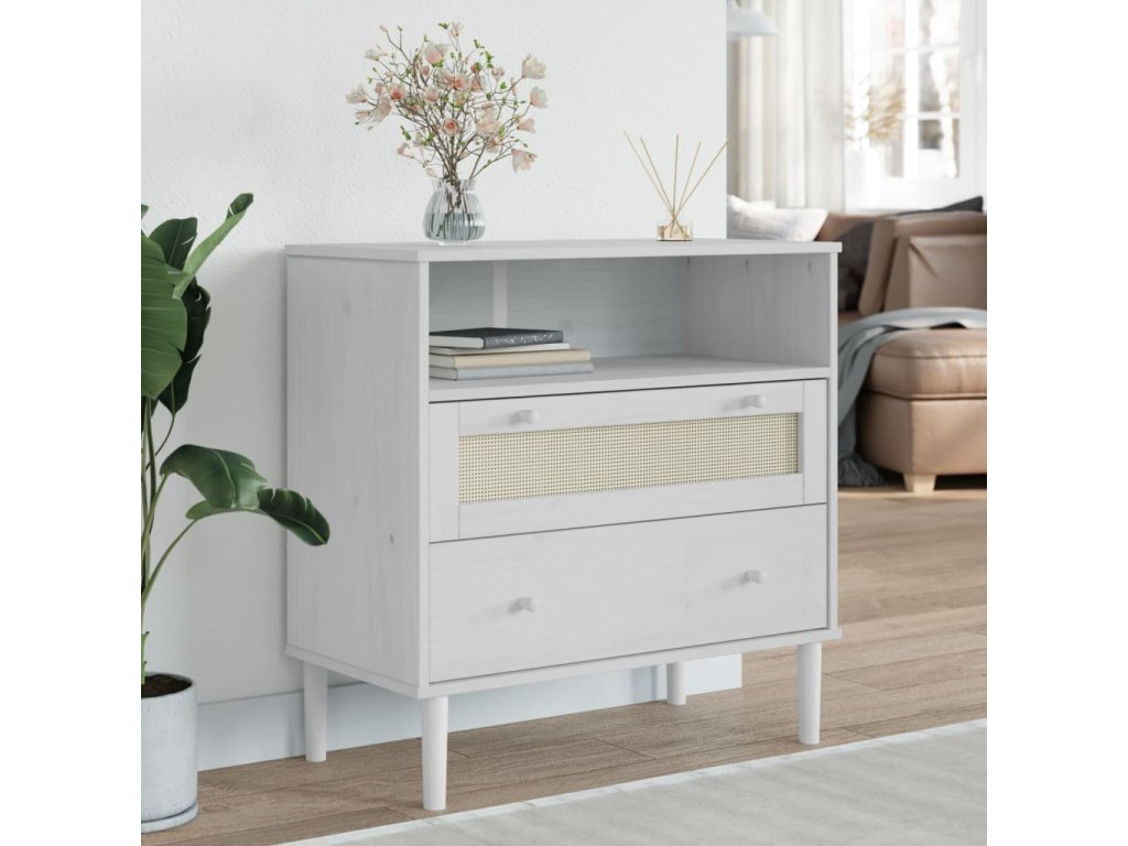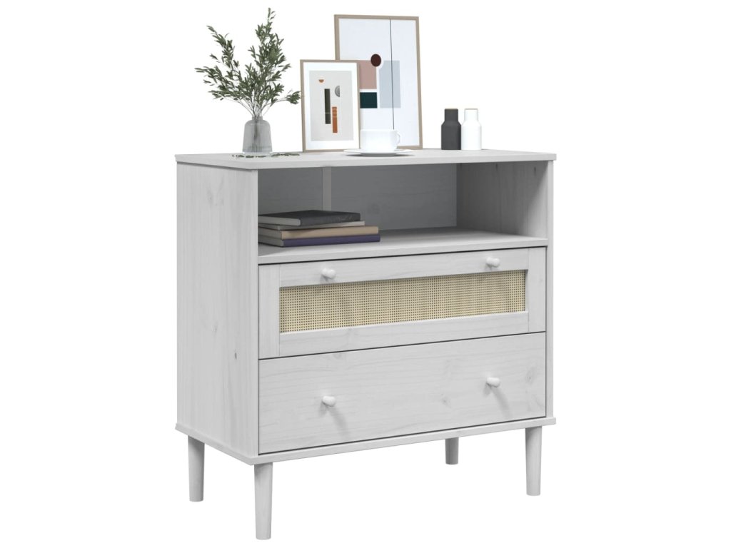 Příborník SENJA ratanový vzhled bílý 80 x 40 x 80 cm borovice 358020