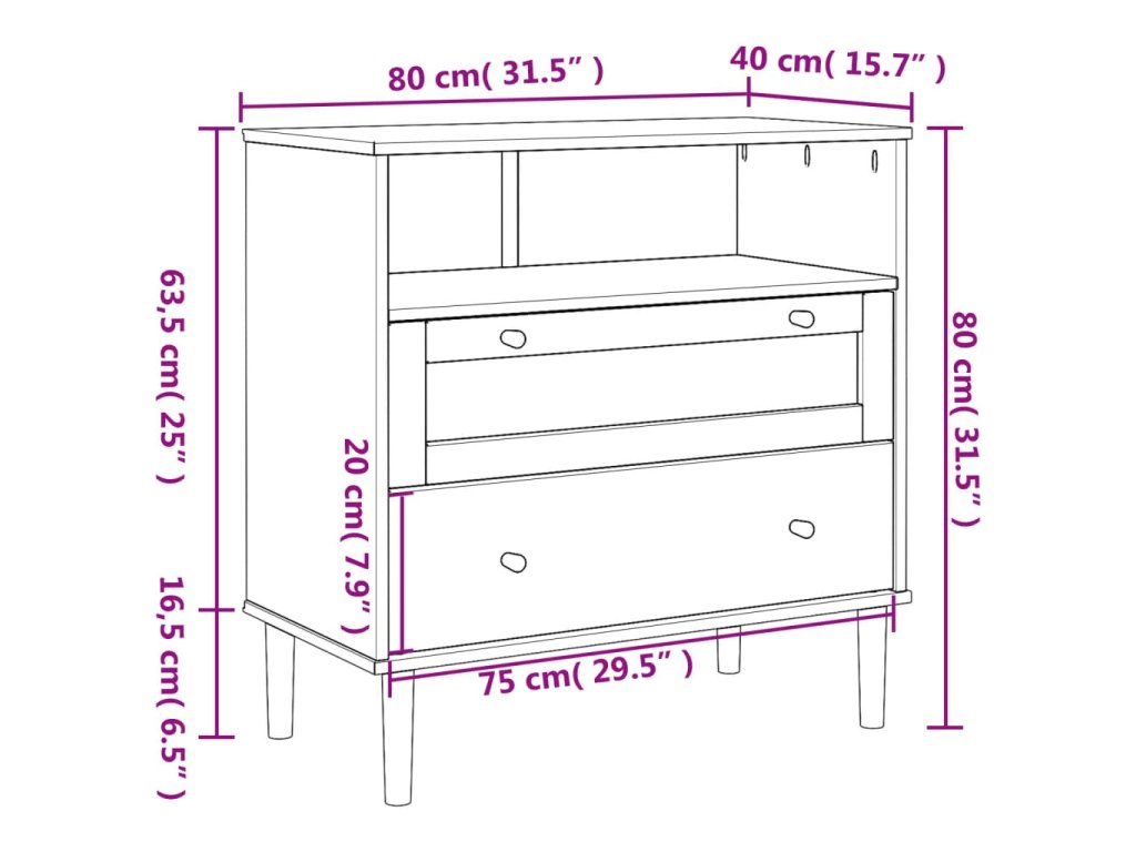 - Rozměry zásuvky (každá): 75 x 35 x 20 cm (Š x H x V)