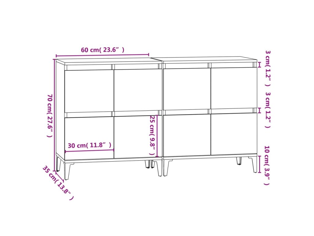 Příborníky 2 ks dub sonoma 60 x 35 x 70 cm kompozitní dřevo 3185762