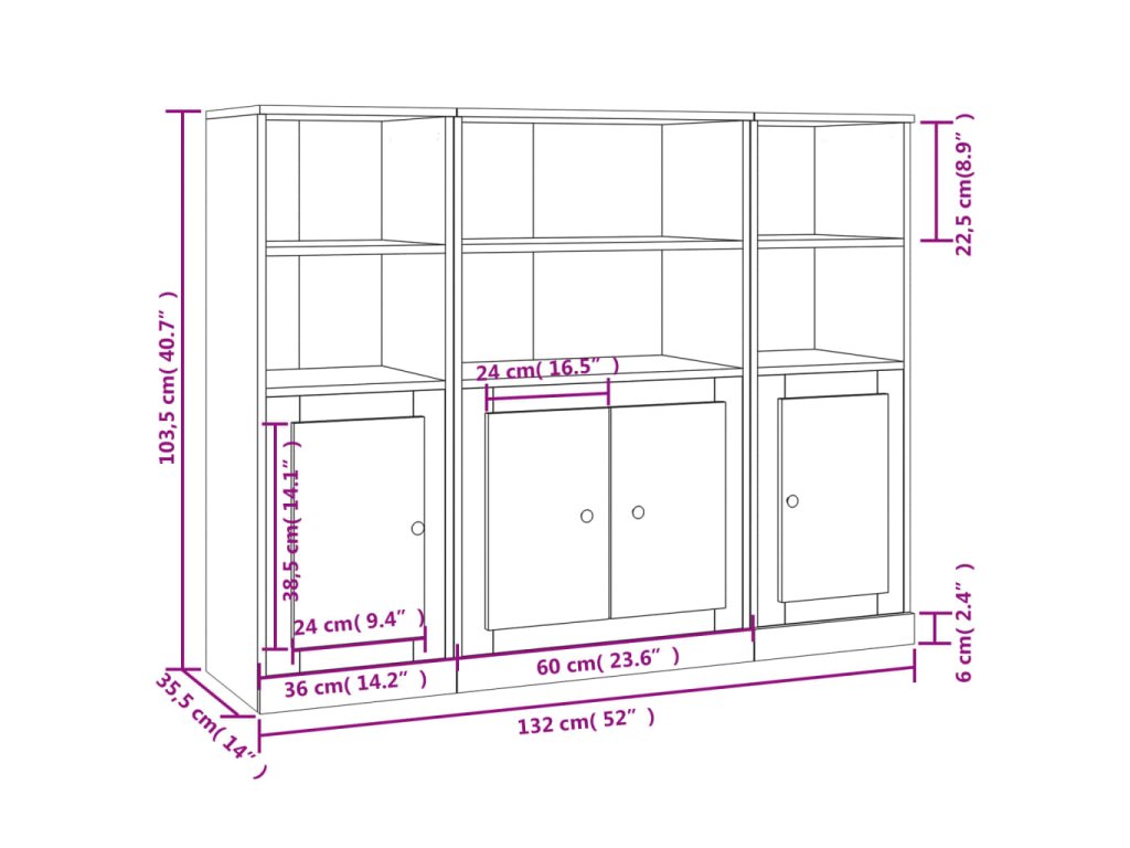 - Celkové rozměry: 132 x 35,5 x 103,5 cm (D x Š x V)