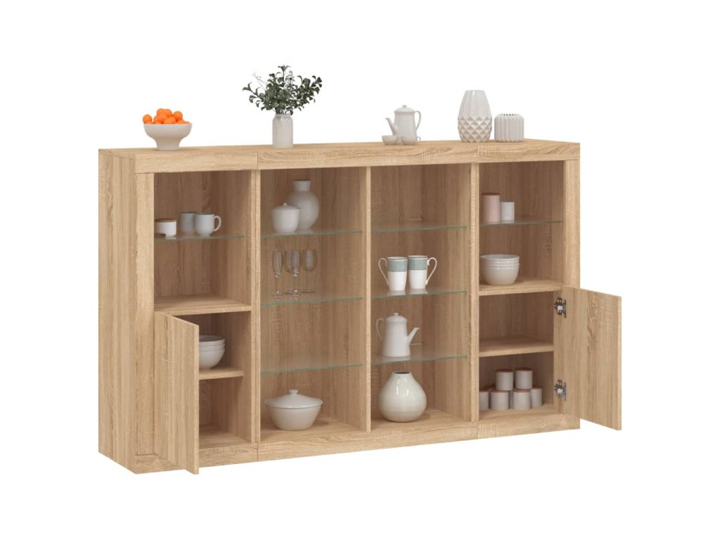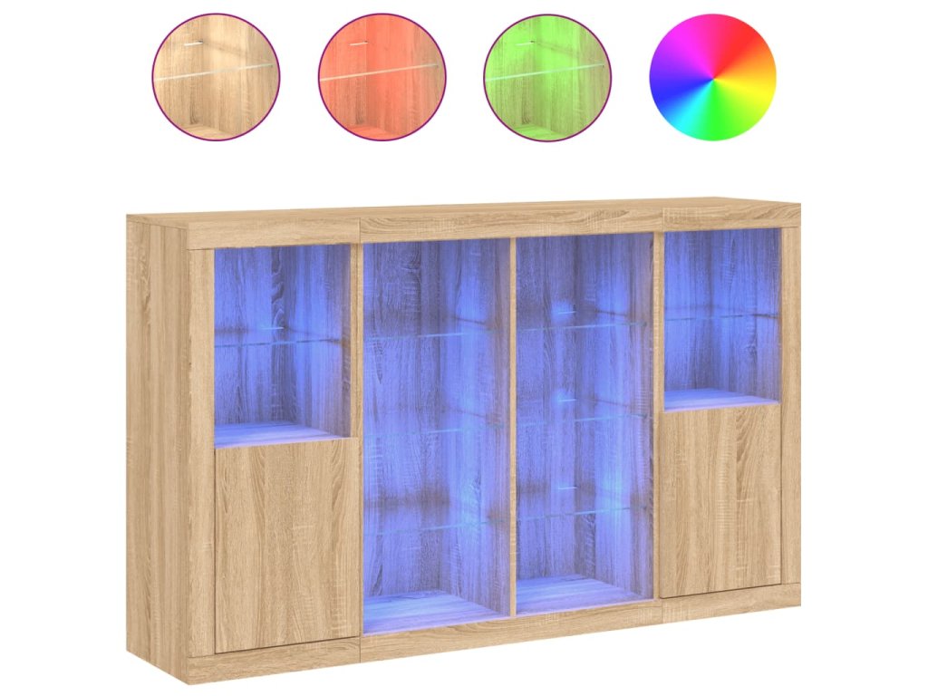 Příborníky s LED osvětlením 3 ks dub sonoma kompozitní dřevo 3209137