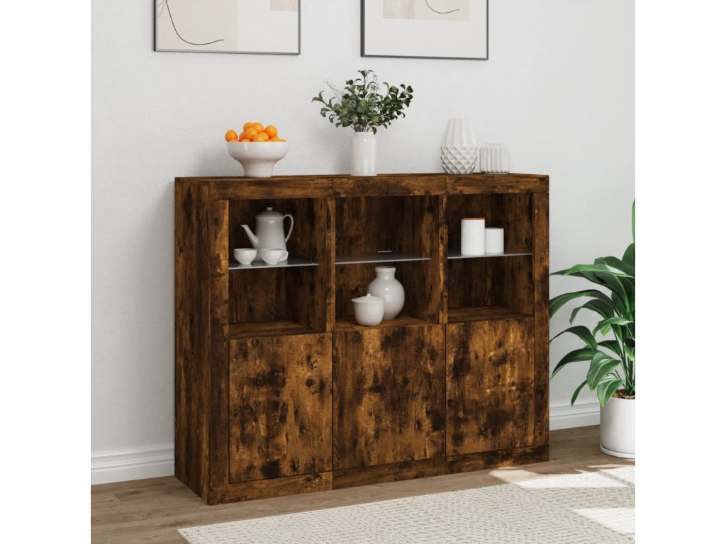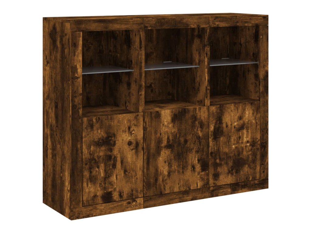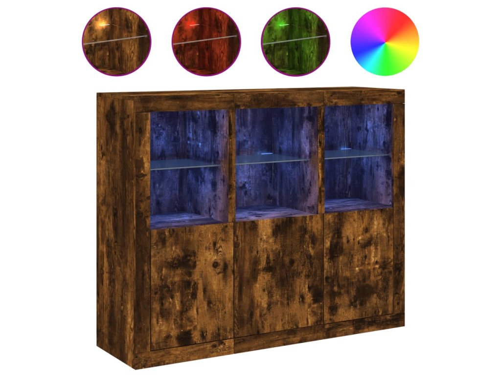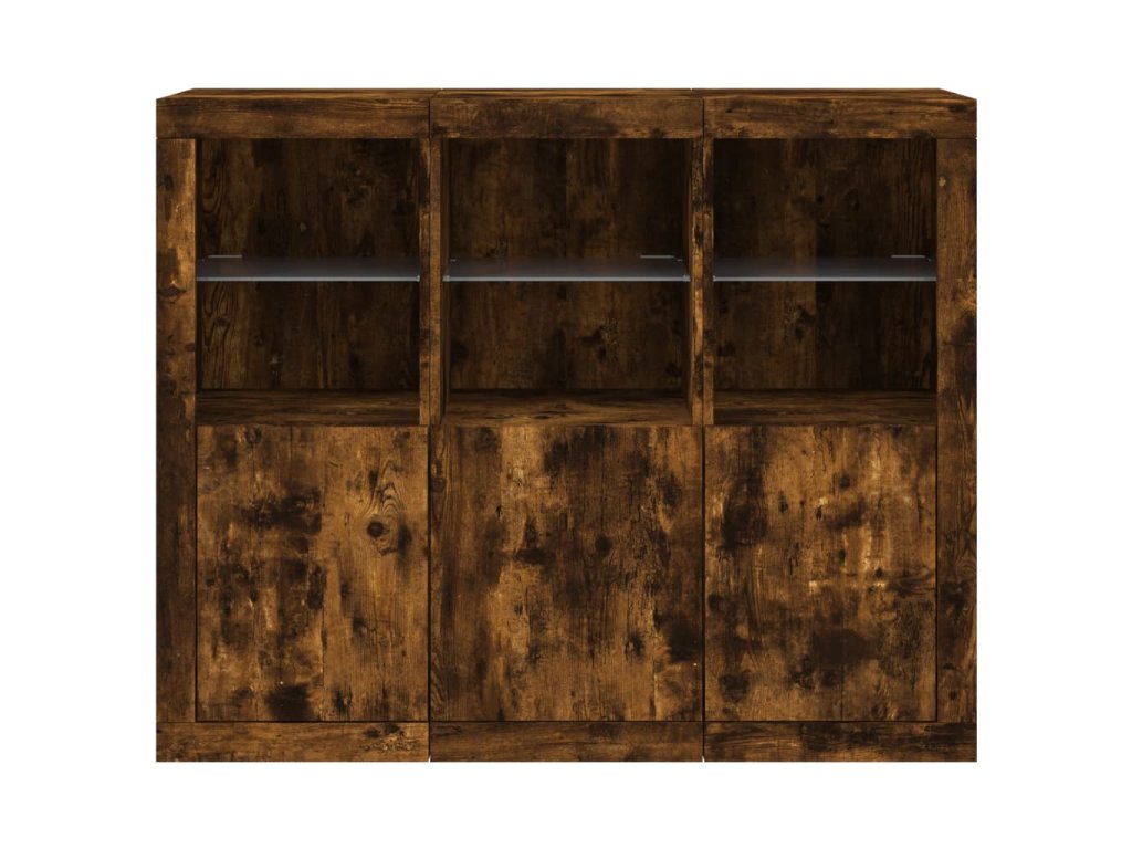 Příborníky s LED osvětlením 3 ks kouřový dub kompozitní dřevo 3209104
