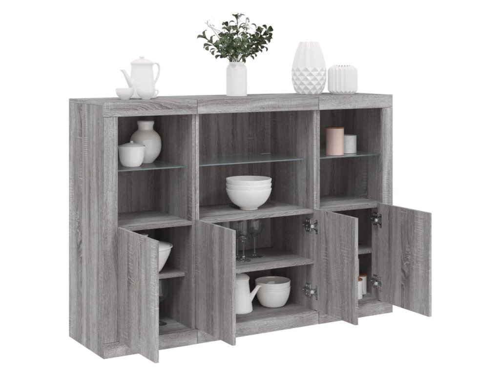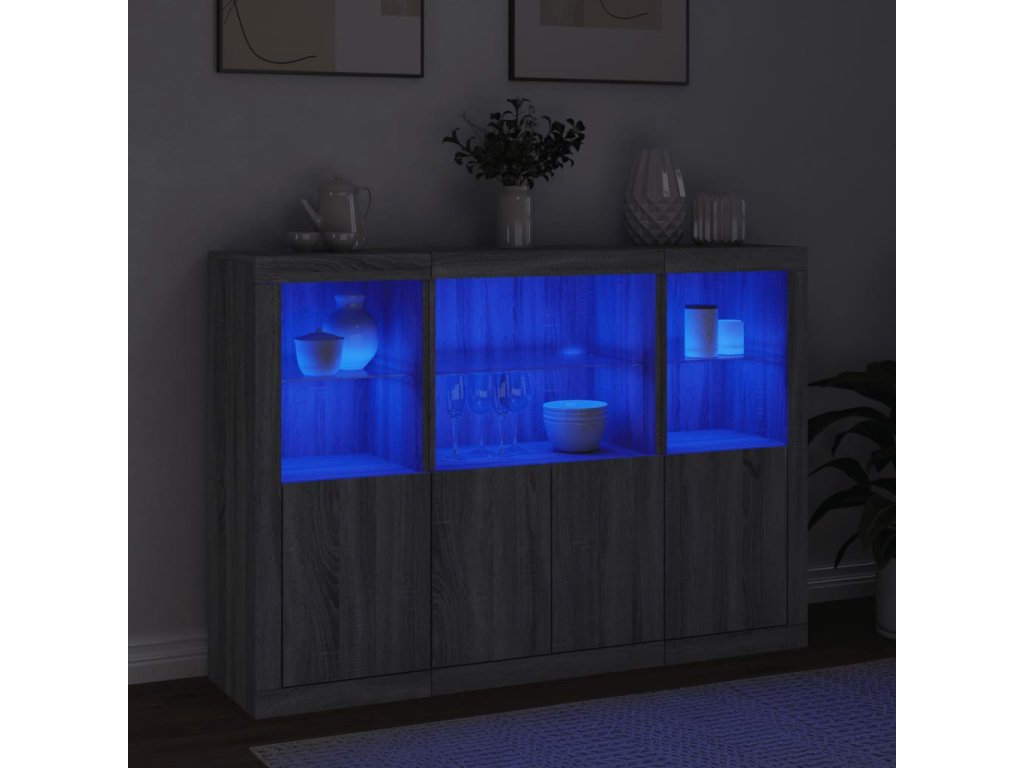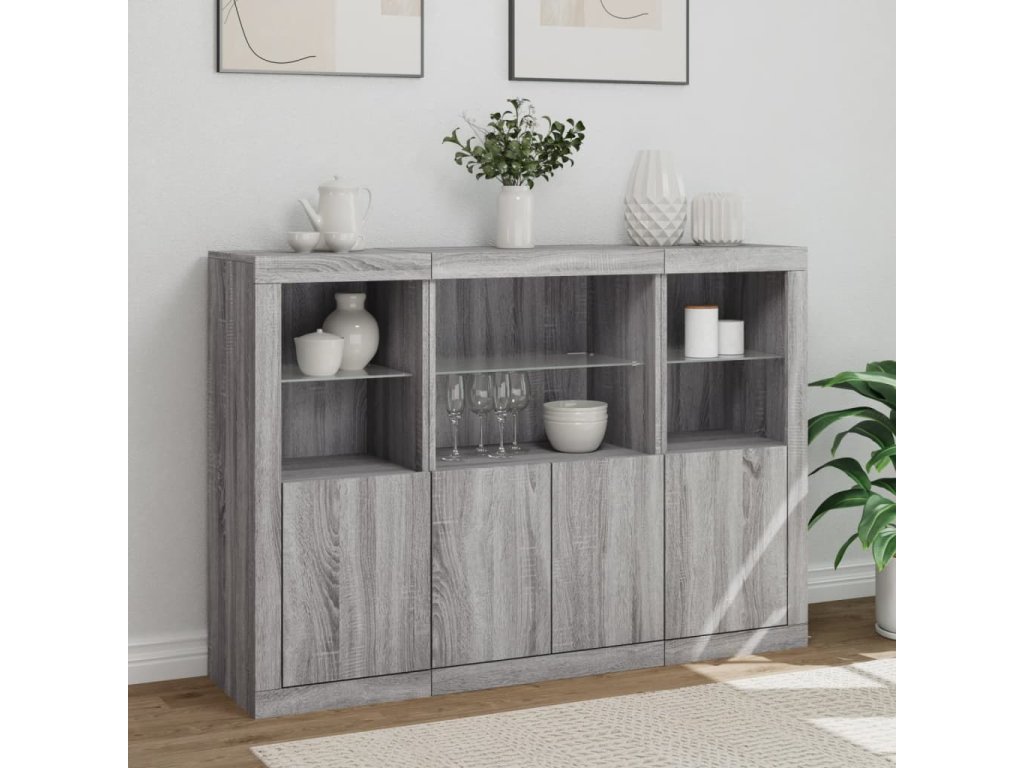 Příborníky s LED osvětlením 3 ks šedé sonoma kompozitní dřevo 3209112
