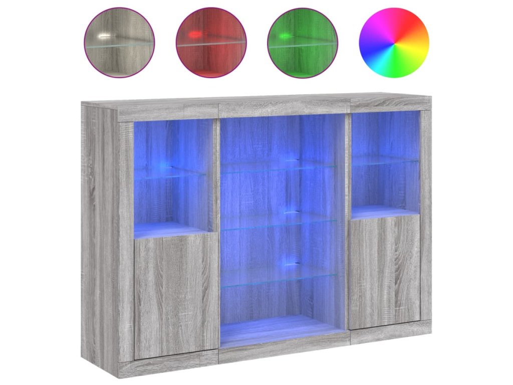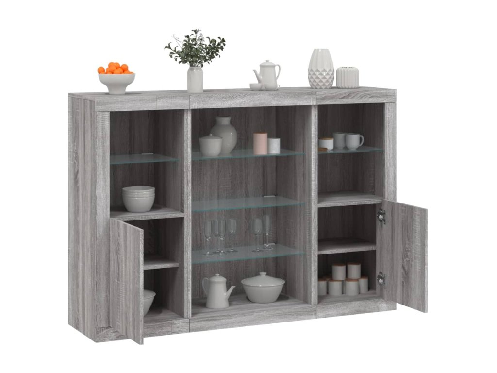 Příborníky s LED osvětlením 3 ks šedé sonoma kompozitní dřevo 3209133