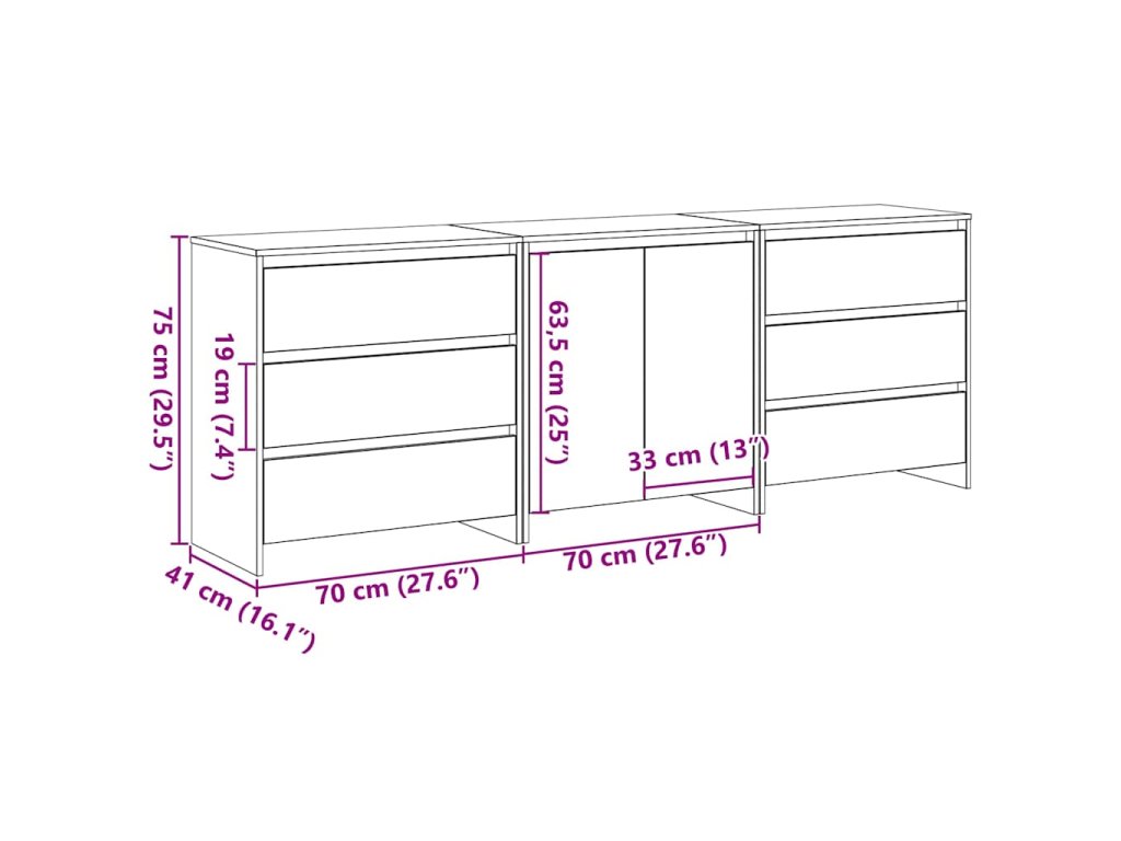 Servírovací skříň 3 pcs Černá 70 x 41 x 75 cm Kompozitní dřevo 3332501