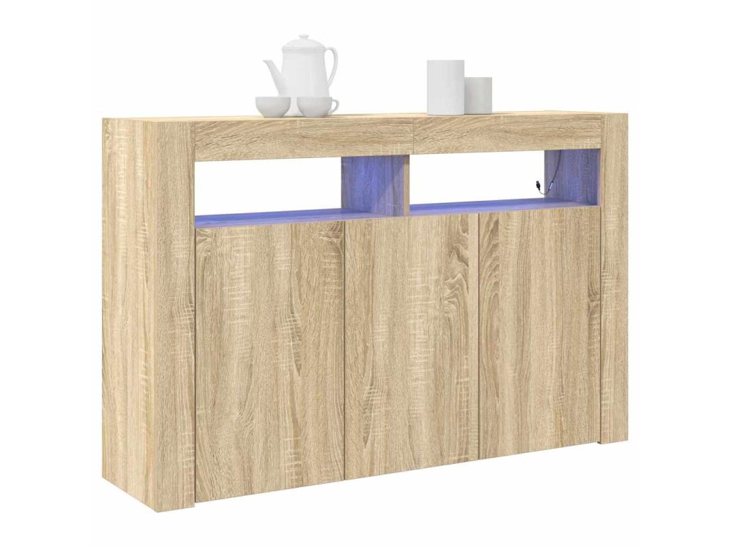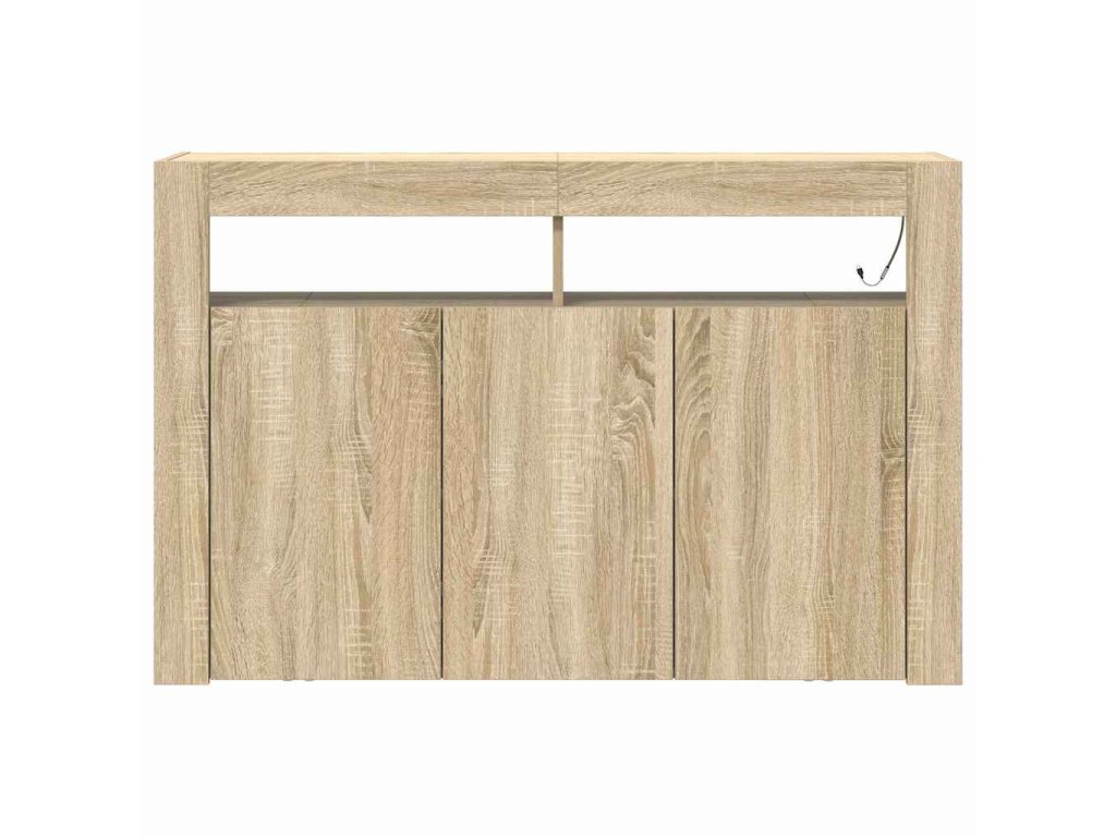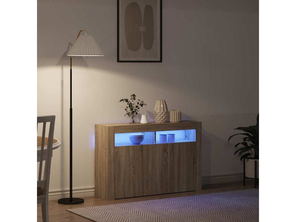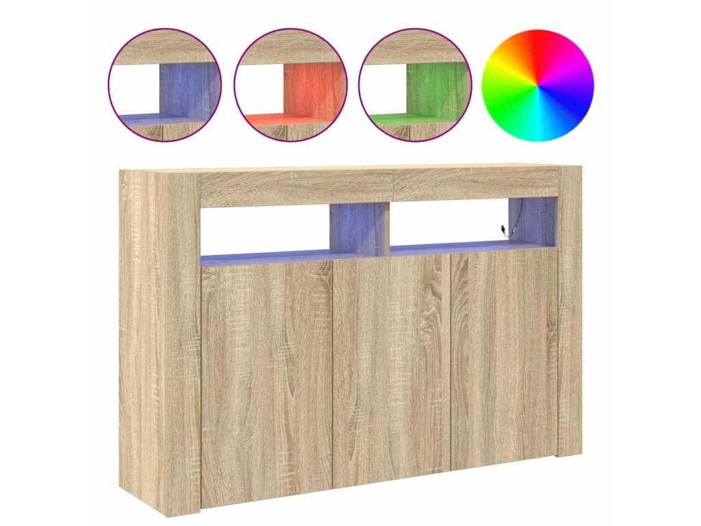Tato moderní LED skříň spojuje skvělý design s praktickým úložným prostorem a unikátním osvětlením. Je to ideální kousek do současných interiérů. Její obdélníkový tvar a kompozitní dřevo zajišťují, že se hodí do různých domovů, přičemž nabízí jak funkčnost, tak styl. Vstavané RGB LED pásky dodávají možnost měnit atmosféru podle nálady.