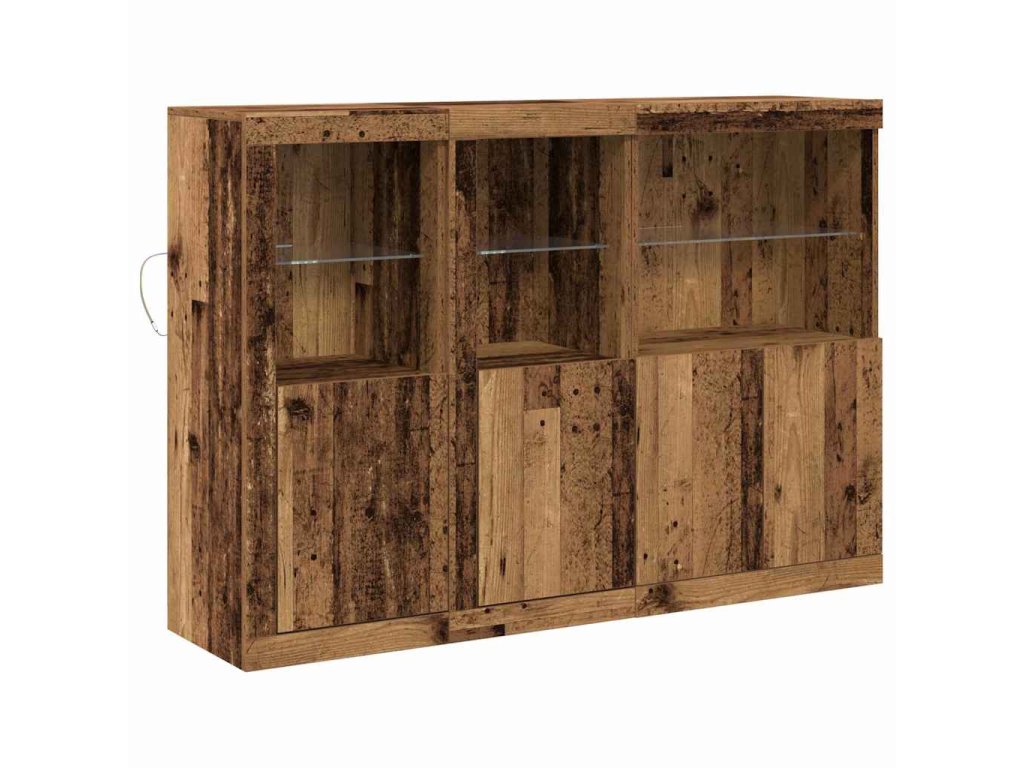 Tahle servírovací skříň s LED světly dodá vašemu domovu elegantní nádech a praktický úložný prostor. Díky rustikálnímu vzhledu ukazuje krásu kompozitního dřeva a vypadá skvěle v každé jídelně nebo obýváku. Její hezký obdélníkový tvar a jemné barvy se hodí k různým stylům a vytváří útulnou atmosféru. Ale nejde jen o vzhled; tahle skříň je i super praktická, nabízí spoustu místa na všechny vaše jídelní potřeby, drobnosti nebo dekorace.