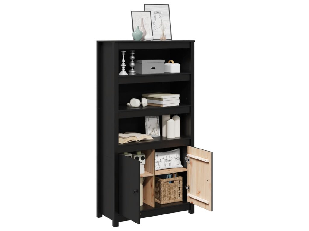 Skříň highboard černá 80 x 35 x 154 cm masivní borové dřevo 823523