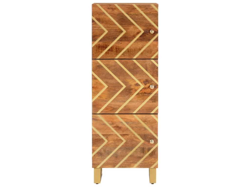 - Masivní mangovníkové dřevo: Masivní mangovníkové dřevo je pevné tropické tvrdé dřevo, ze kterého se vyrábí robustní nábytek. Krásná kresba dřeva propůjčuje každému kusu nábytku jeho jedinečný a od všech ostatních lehce odlišný vzhled. Skříňka je vyrobená z masivního mangovníkového dřeva, je tedy stabilní a odolná.