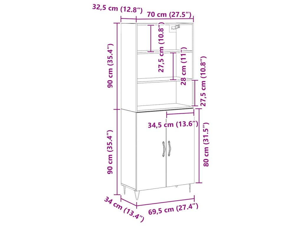 - Celkové rozměry: 69,5 x 32,5 x 180 cm (D x Š x V)