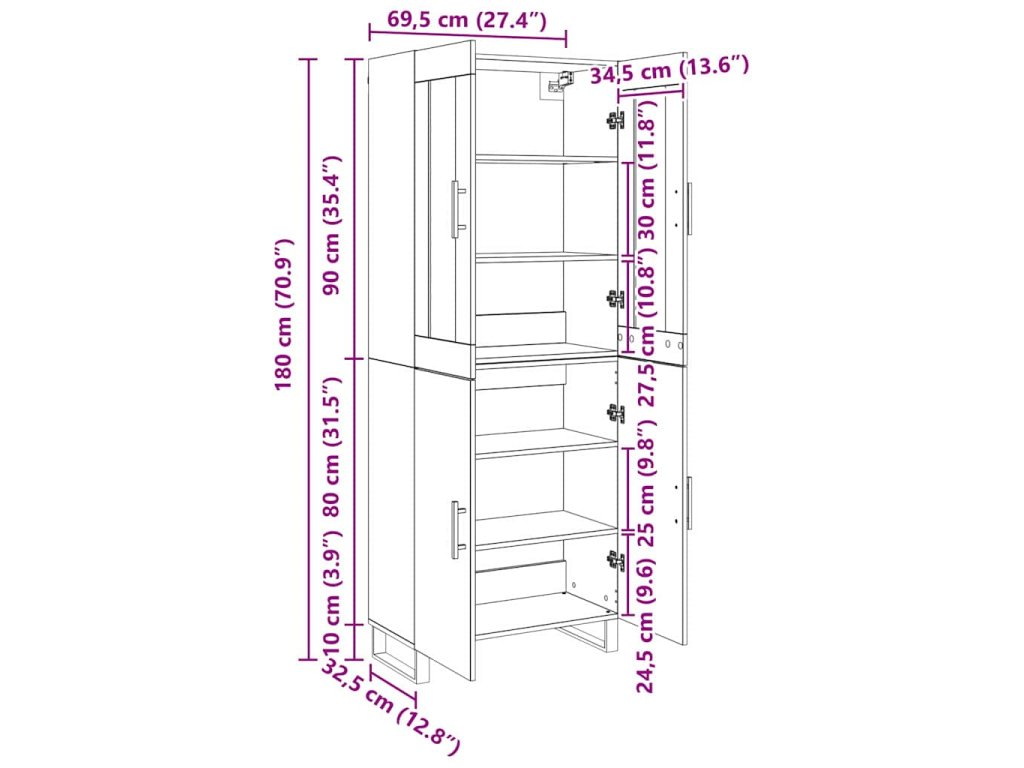 Vysoký bufet Černý dub 69,5 x 34 x 180 cm Kompozitní dřevo 3394523