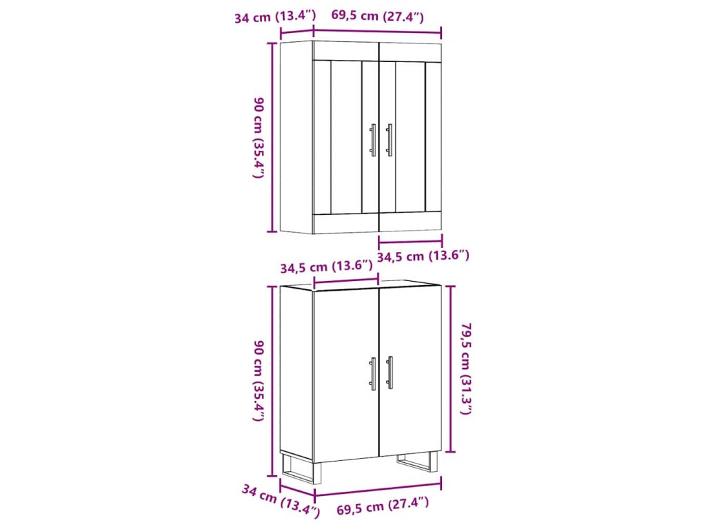 - 1 x komoda: 69,5 x 34 x 90 cm (D x Š x V)