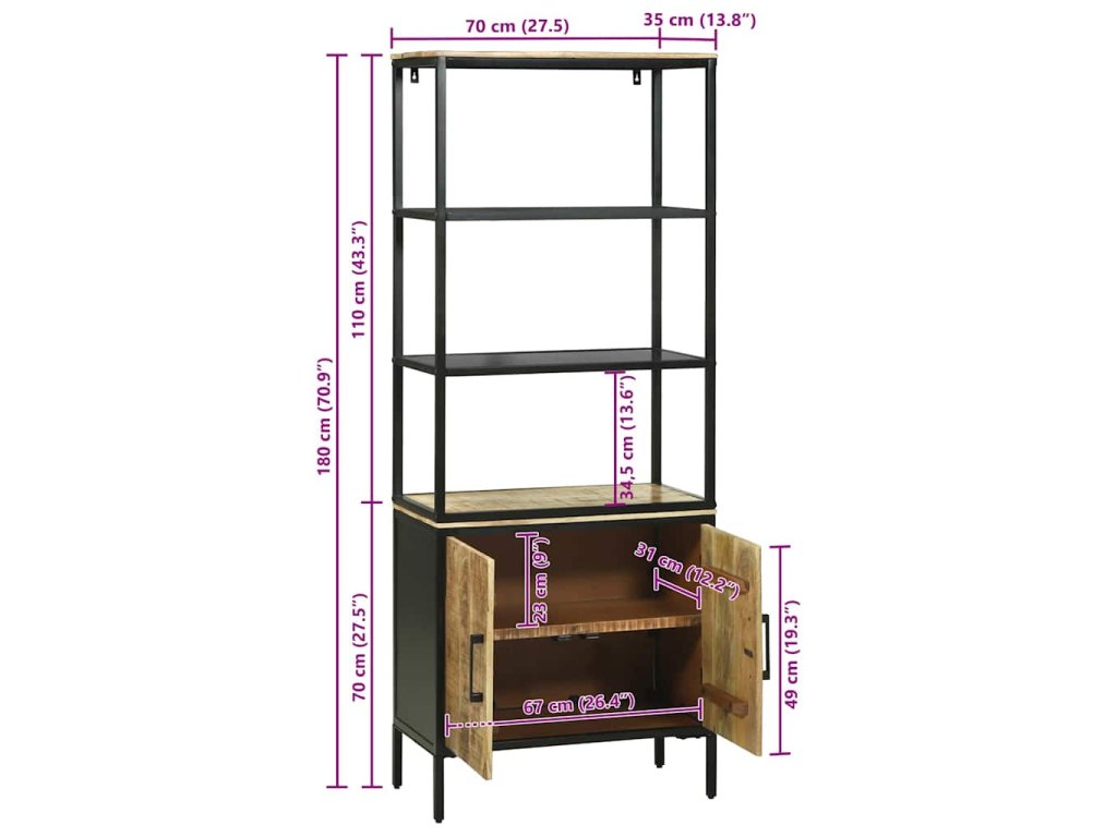 Vysoký bufet Hnědá 70 x 35 x 180 cm Masivní magnovníkové dřevo 3310124