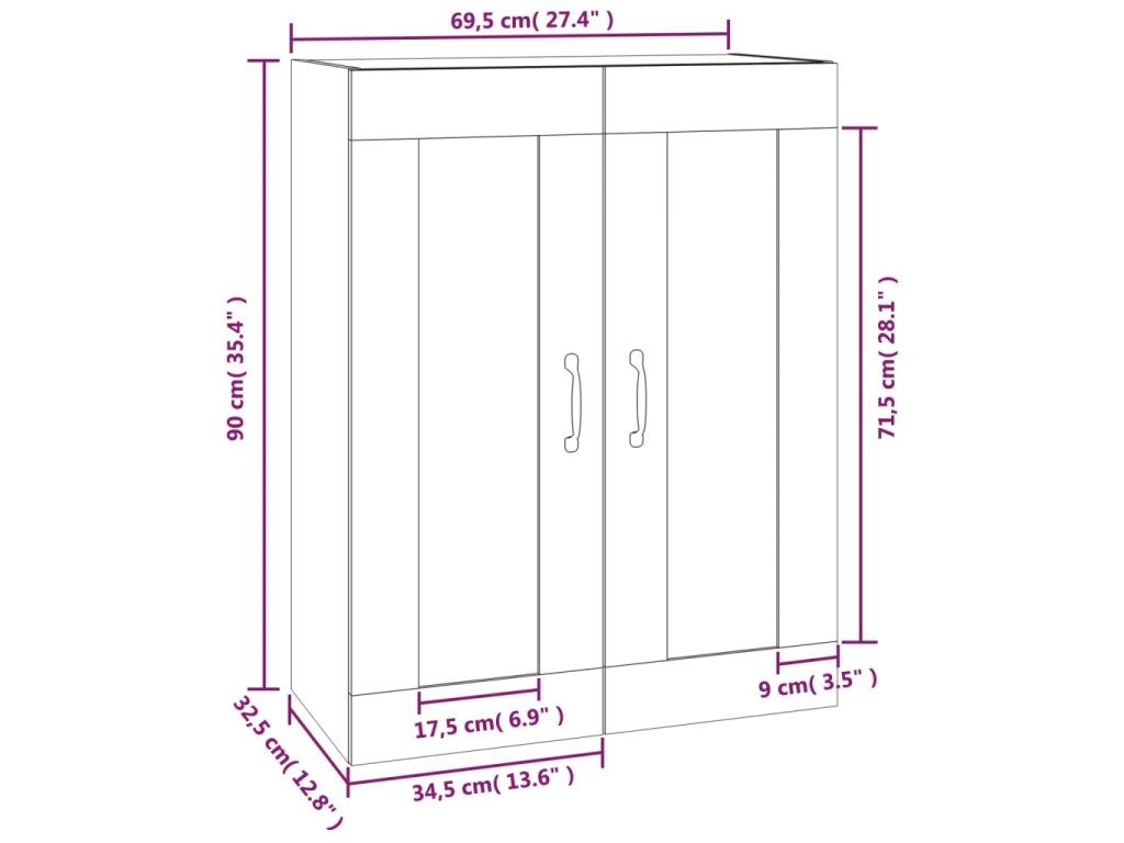 Závěsná nástěnná skříňka kouřový dub 69,5 x 32,5 x 90 cm 817396