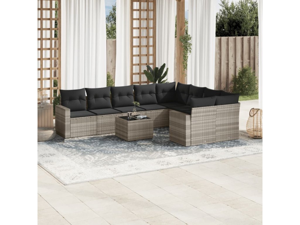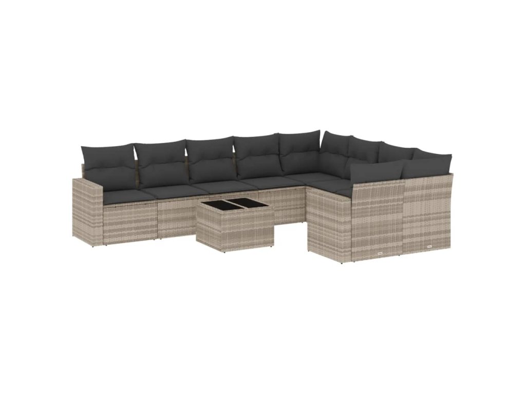 10dílná zahradní sedací souprava podušky světle šedá polyratan 3251789