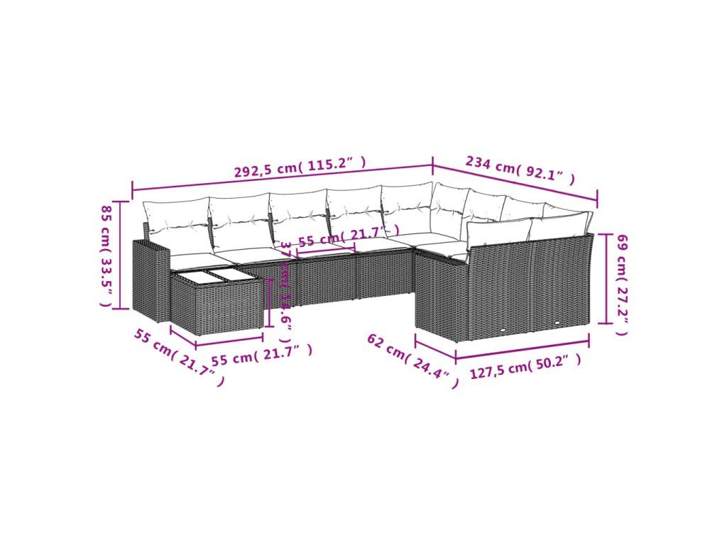10dílná zahradní sedací souprava s poduškami béžová polyratan 3251796