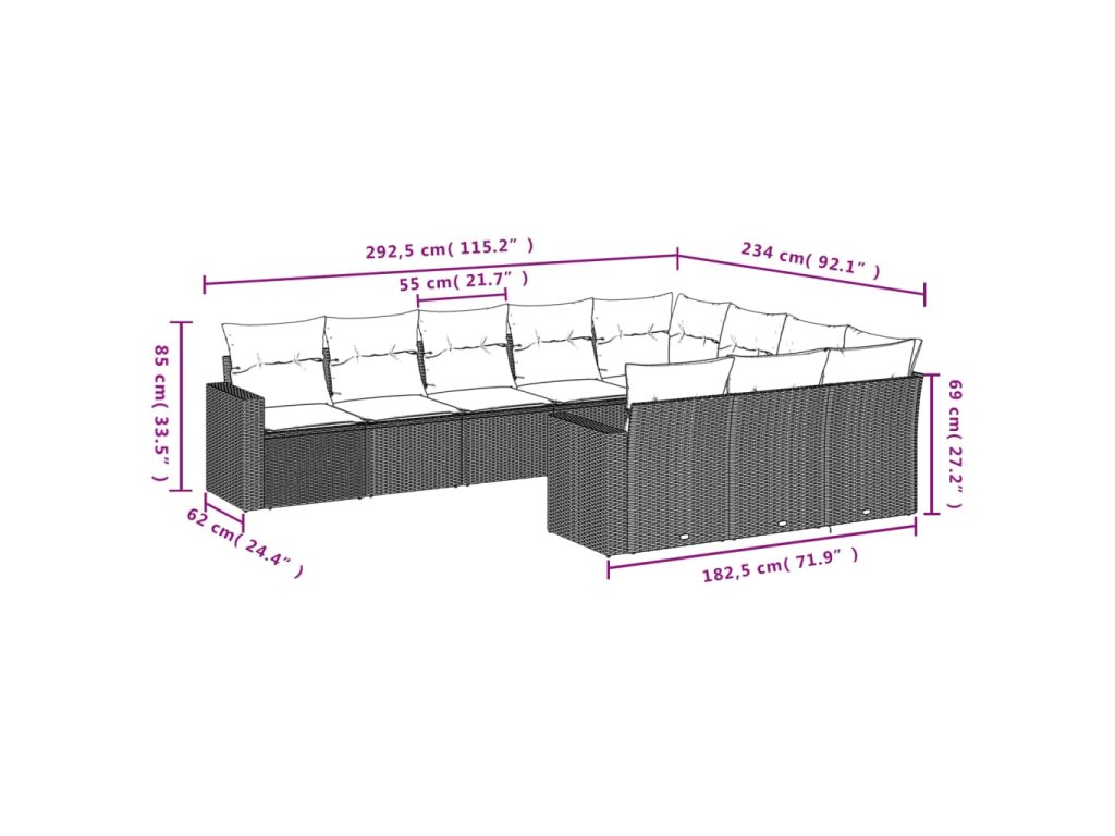 10dílná zahradní sedací souprava s poduškami šedá polyratan 3251827