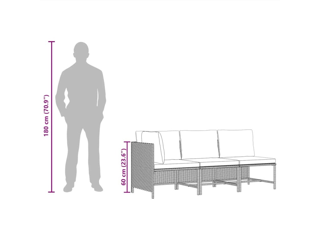 3dílná zahradní sedací souprava s poduškami černá polyratan 313519