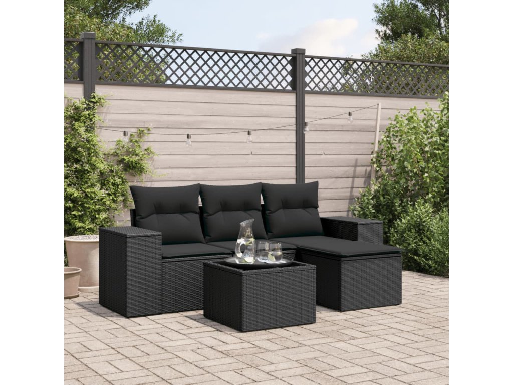 5dílná zahradní sedací souprava s poduškami černá polyratan 3222474