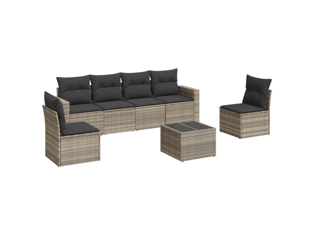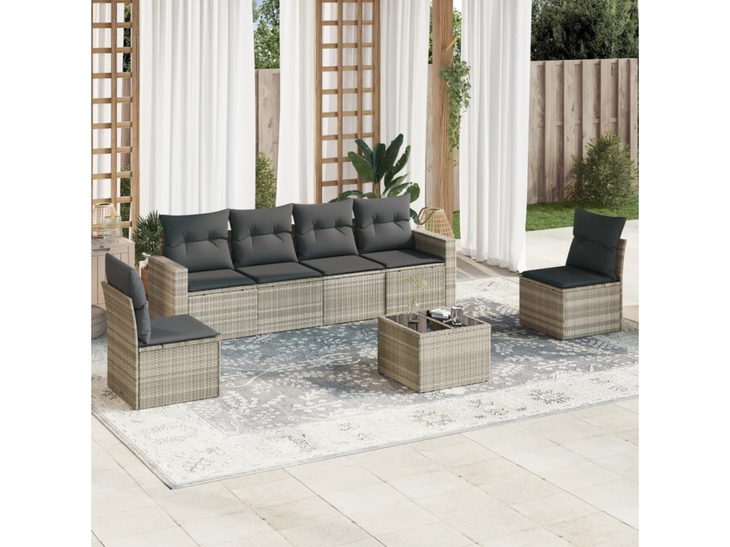 7dílná zahradní sedací souprava a podušky světle šedá polyratan 3251159