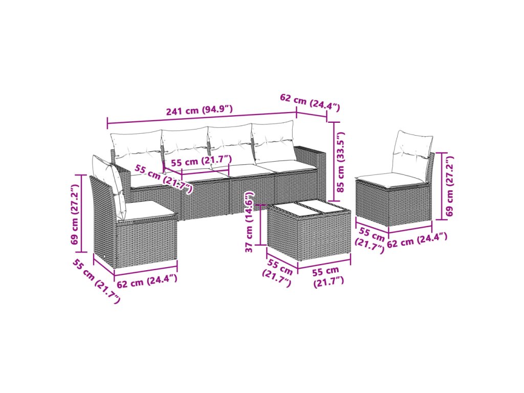 Tato zahradní sedací souprava je dokonalým doplňkem vaší zahrady, terasy nebo dvorku a poskytne vám pohodlné a příjemné místo, kde si můžete povídat s rodinou a přáteli nebo jen tak odpočívat a užívat si pobyt venku.
