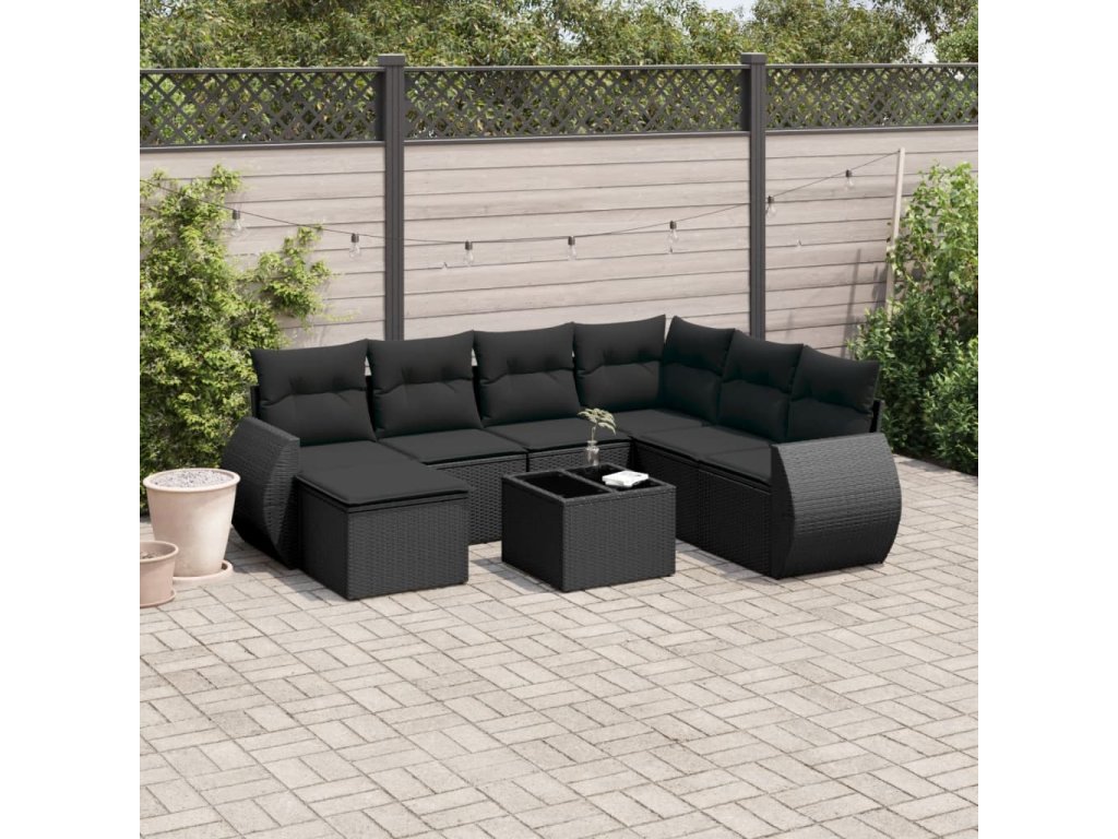 8dílná zahradní sedací souprava s poduškami černá polyratan 3221704
