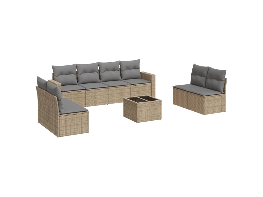 9dílná zahradní sedací souprava s poduškami béžová polyratan 3251196