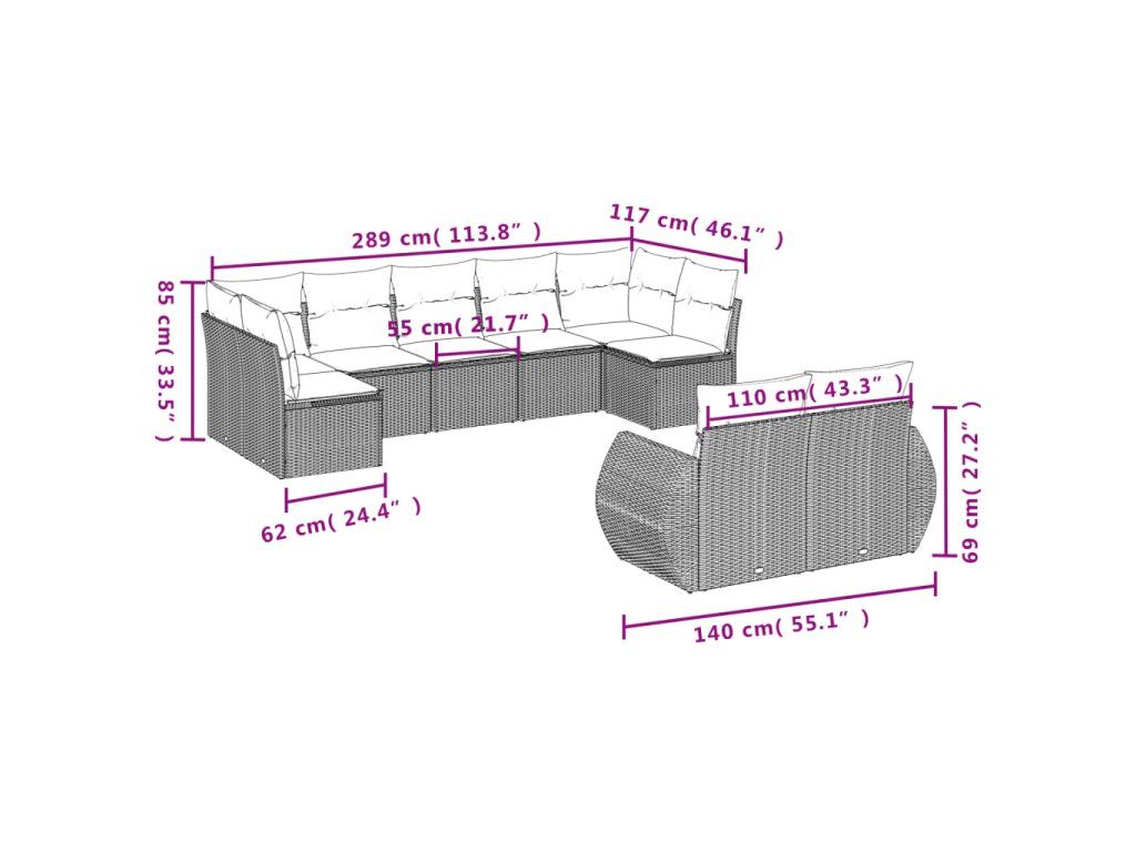 9dílná zahradní sedací souprava s poduškami černá polyratan 3221814