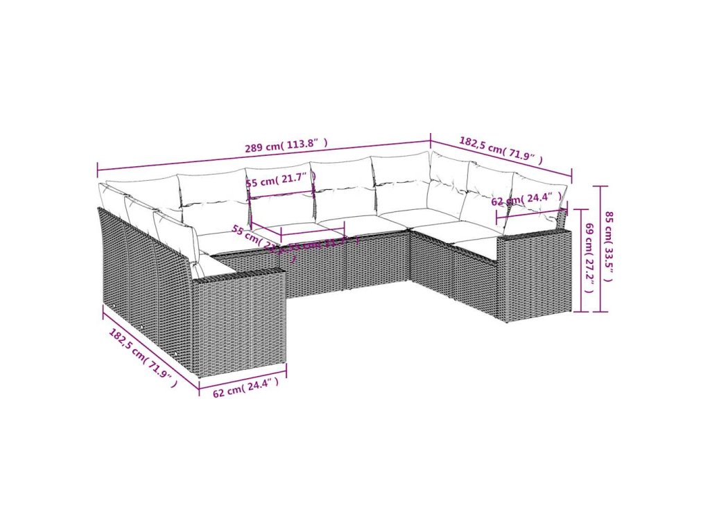 9dílná zahradní sedací souprava s poduškami hnědá polyratan 3251740