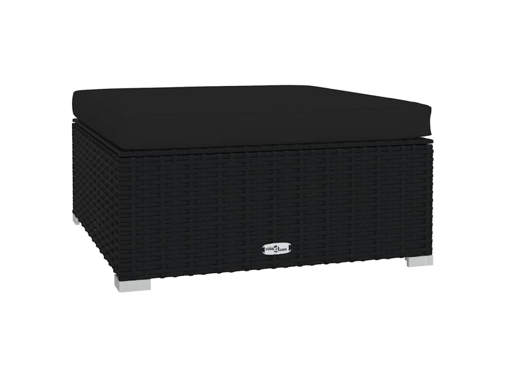 Zahradní podnožka s poduškou černá 70 x 70 x 30 cm polyratan 317525