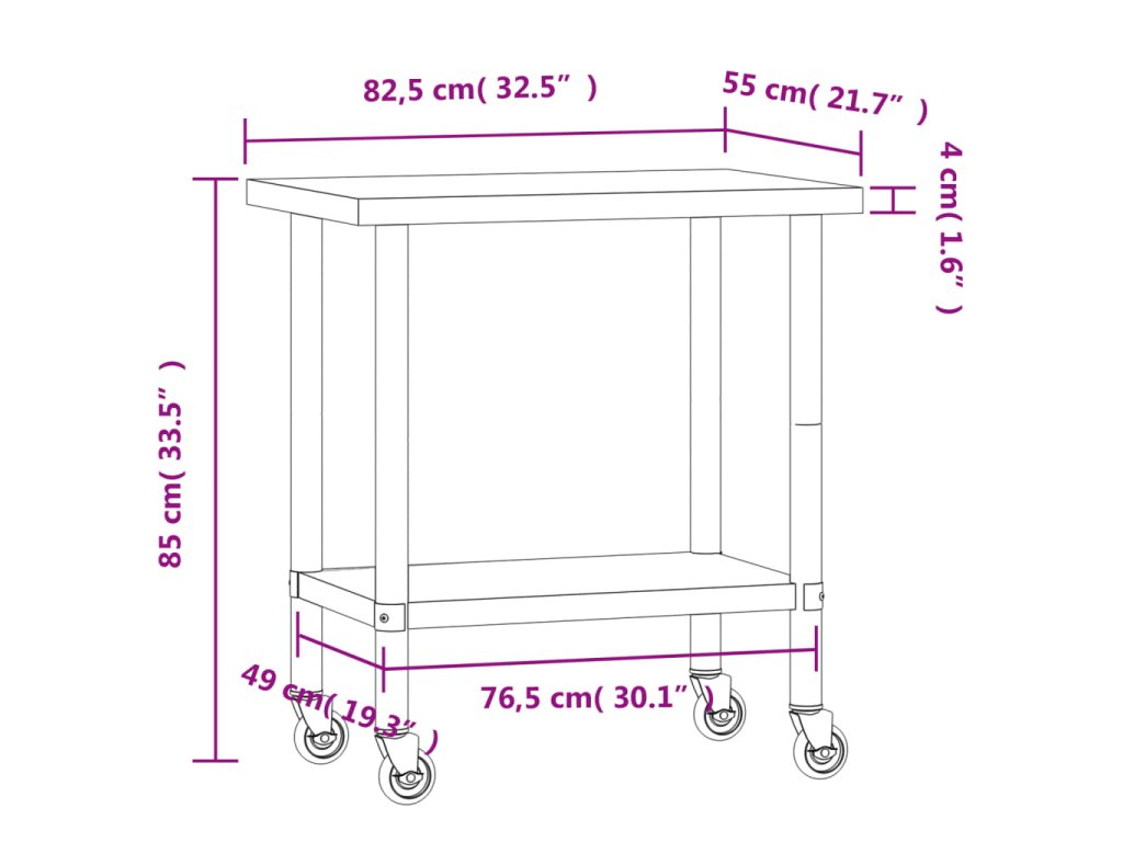 - Dostatek pracovního prostoru: Nerezový přípravný stůl je navržen se spodní policí, jež lze přizpůsobit různým úložným potřebám, a poskytuje dostatek úložného místa pro vaši mikrovlnou troubu, kuchyňské náčiní nebo jiné nástroje, které můžete potřebovat.
