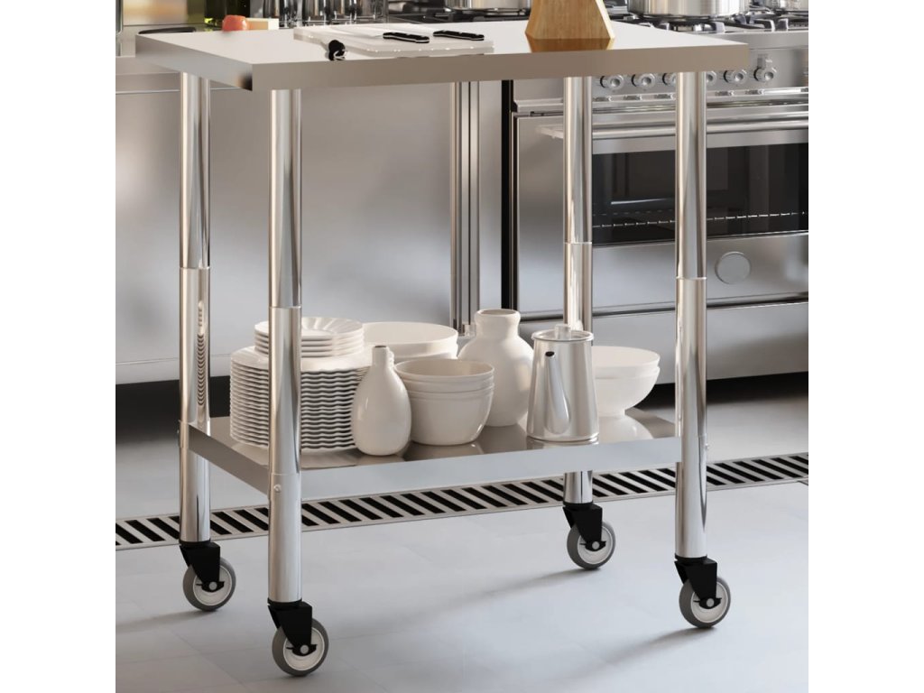 Kuchyňský pracovní stůl s kolečky 82,5x55x85 cm nerezová ocel 376463