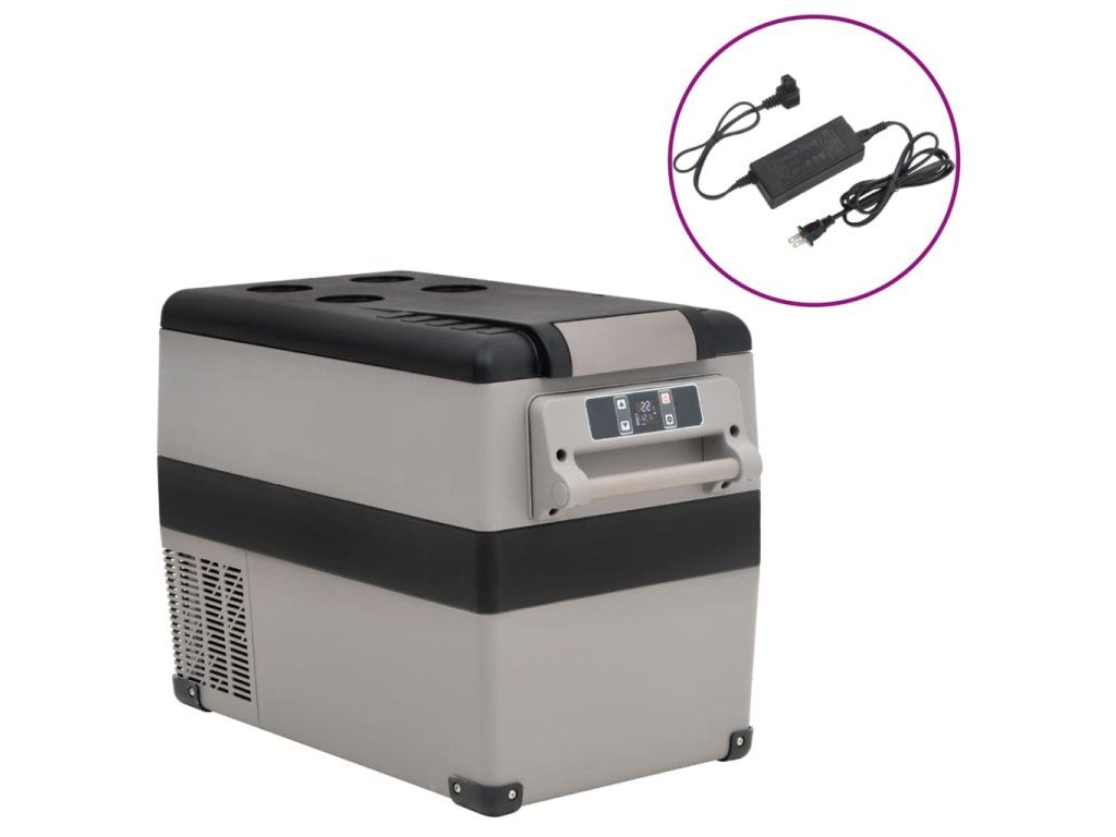 Chladicí box s rukojetí a adaptérem černý a šedý 55 l PP a PE 3154643