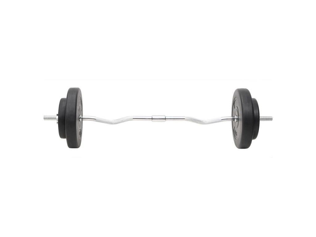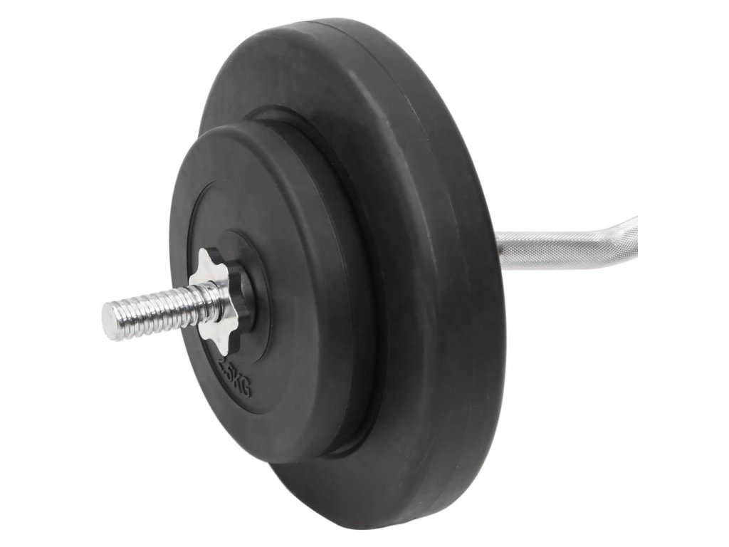 - Odolný materiál: Činka je vyrobena z pochromované oceli a je pevná a stabilní. Závaží je vyrobené z cementu a potažené robustním plastem šetrným k podlaze. Nezaznamenáte tedy žádné nepříjemné řinčení závaží.