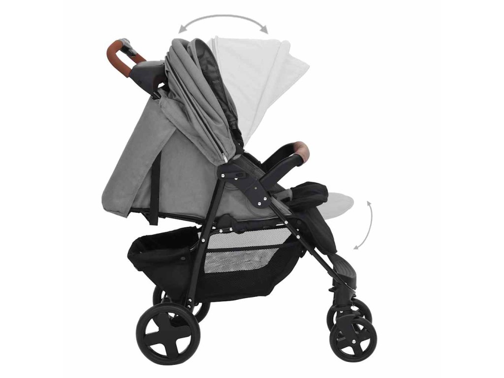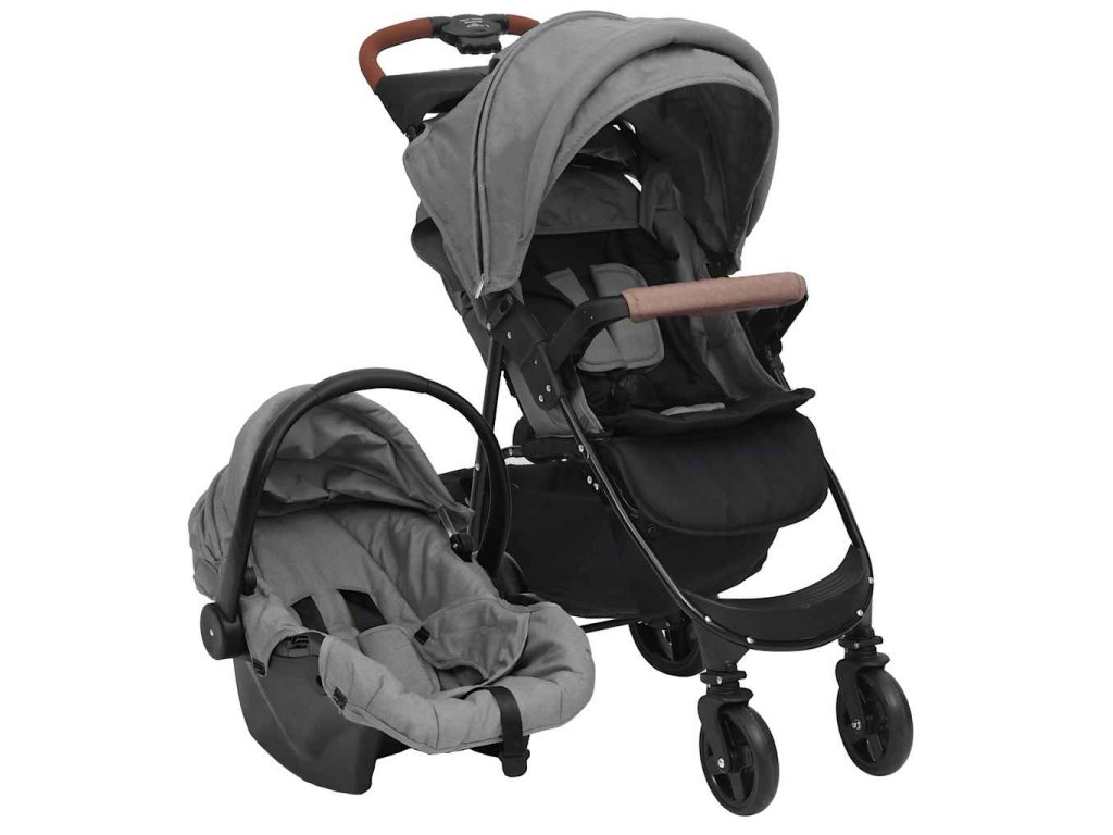 Dětský kočárek 3 v 1 světle šedý ocel 10377