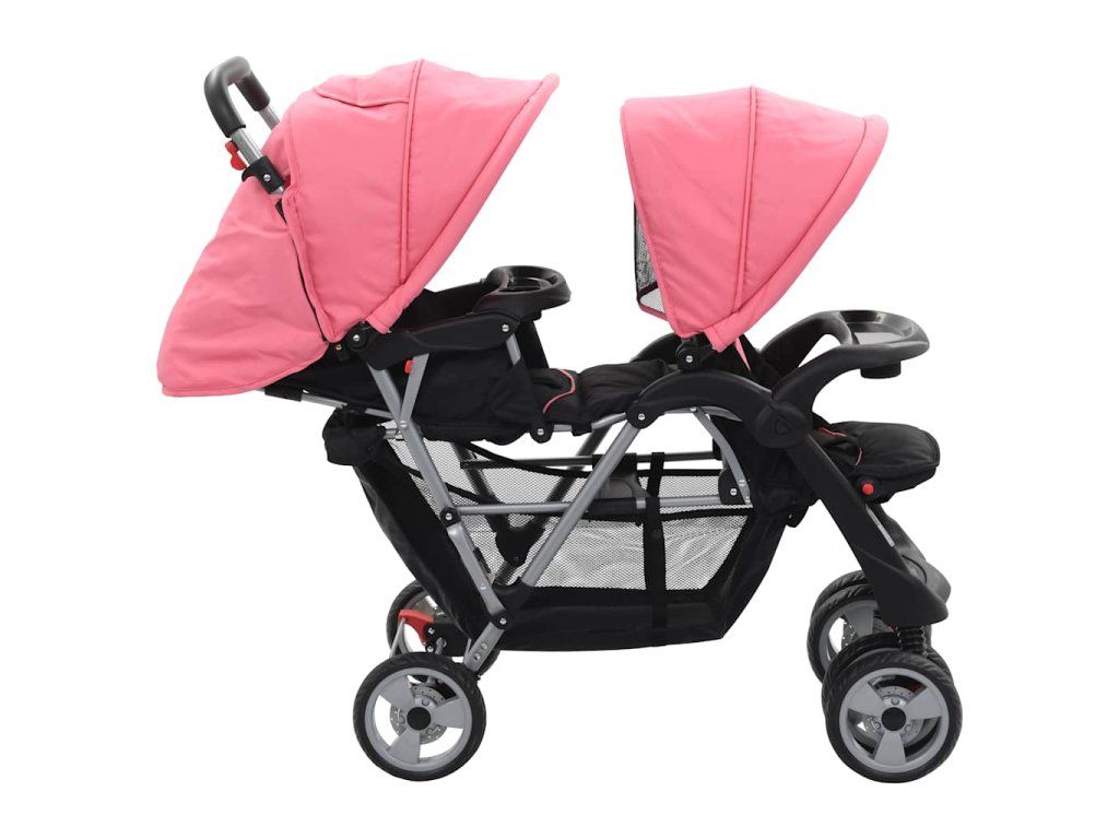 Tandemový kočárek růžovo-černý ocel 10157