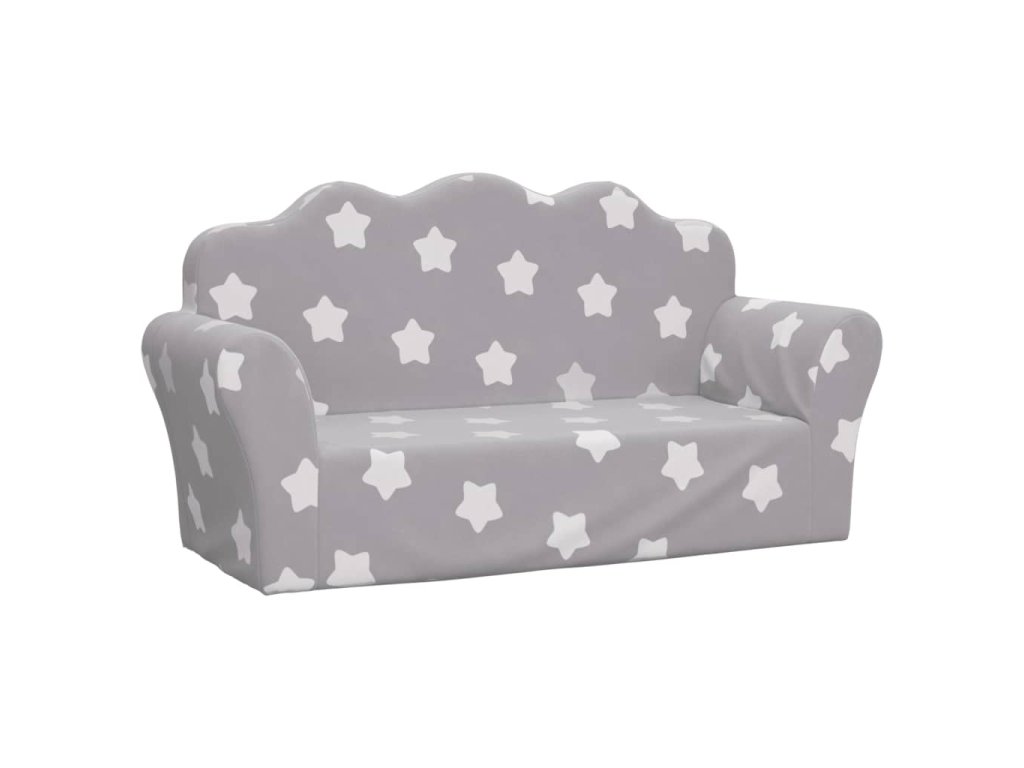 Dětská pohovka 2místná světle šedá s hvězdami měkký plyš 357046