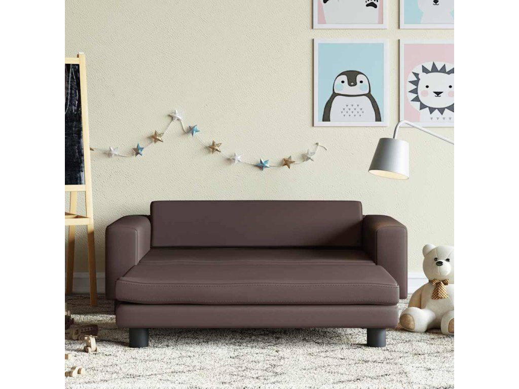 Dětská pohovka s podnožkou hnědá 100 x 50 x 30 cm umělá kůže 3196416