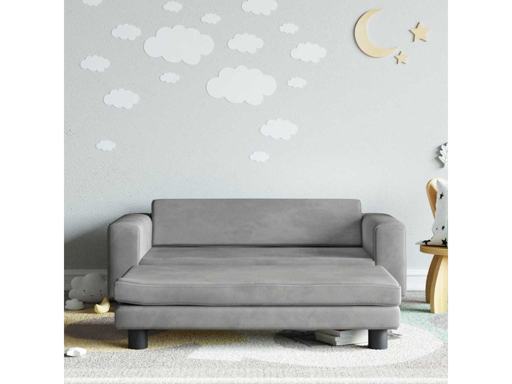 Dětská pohovka s podnožkou světle šedá 100 x 50 x 30 cm samet 3196408
