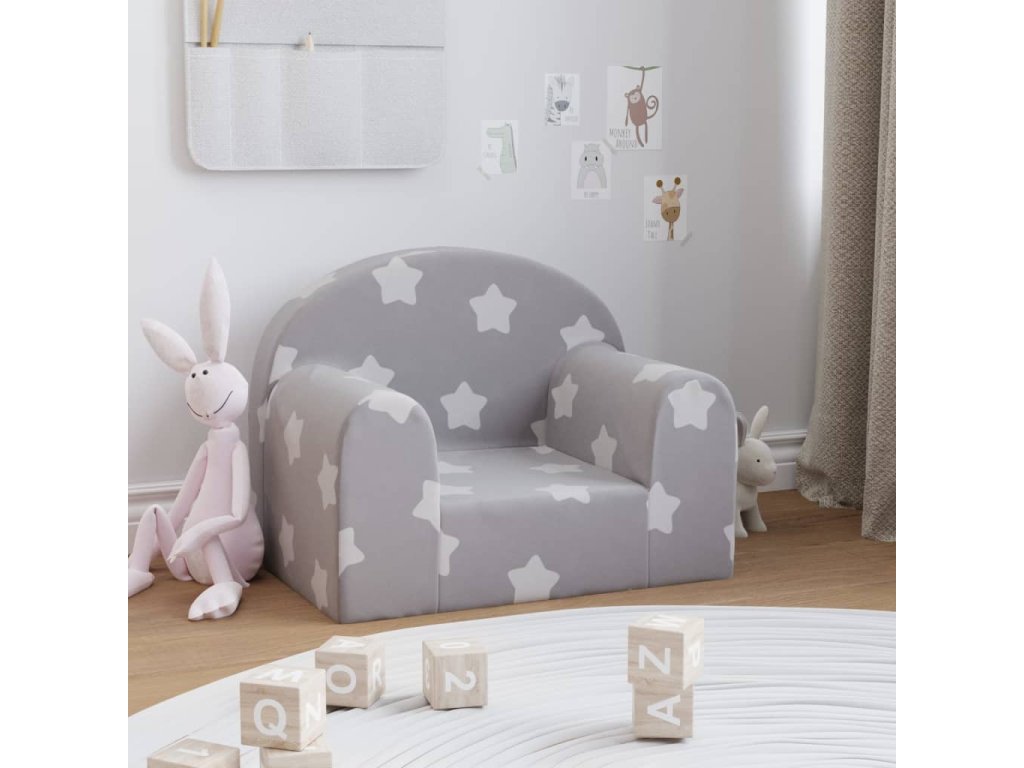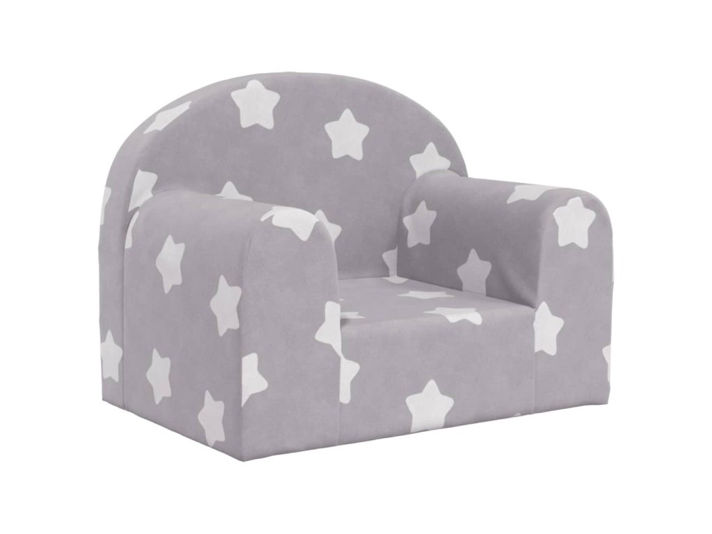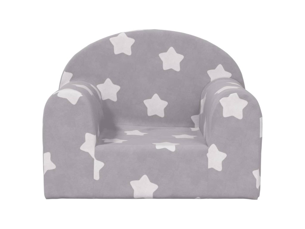 Dětská pohovka světle šedá s hvězdami měkký plyš 357004